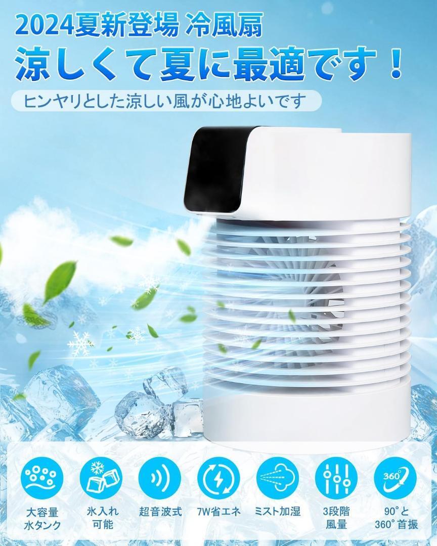 ミストの吹き出し量が1時間でおよそ50/60mlになり、氷入れでさらに冷却効果を倍増でき、静音設計なので、お昼寝、本読みや仕事する時も気にせず、安心に使いいただけます。シンプルなデザインで高級感が溢れて、お友達や家族へのプレゼントでも最適です。ご注意:1、充電中は冷風扇は使用できません;2、冷風扇からのスプレーが効かない場合は、ノズルを清掃してみてください。