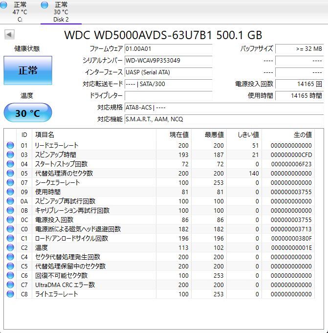 【東芝・換装用HDD 500GB☆交換/修理】WDC WD5000AVDS-63U7B1 500GB 【状態について】 USED品ですので、使用感のあるお品になります。 多少の傷や汚れがございます。 状態を含め、付属品、全て掲載画像を参考にご検討お願いいたします。 出品にあたり、以下の動作を確認しました。 動作確認事項 ◇HDDの健康状態は正常です。 ◇対応機種:RD-BR600/RD-BR610/RD-BZ700/RD-BZ710 ◇その他の対応機種はご質問下さい。 ※ HDD交換後に、本体でフォーマットを実行してご使用ください。 中古品ですので、ご理解のある方のみご落札下さい。 本体に、汚れや傷等があります。 【発送について】 ・宅急便コンパクト(全国一律600円、ただし、沖縄はレターパックプラス)になります。 PT5041 注意事項 ◆入札した時点で、すべての記載事項をご理解いただき、同意なさったものとみなします。 ◆評価が「新規」「マイナス」の方の入札は、無条件で削除いたします。 ◆悪い評価が多い方の入札は、こちらの判断で削除する場合があります。 ◆落札後のキャンセルは、悪い評価になりますので注意下さい。 ◆オークション終了後、24時間以内に連絡をいただけない場合は、落札者都合で削除いたします。 ◆オークション終了後、72時間以内に送金手続きが完了できる方のみ、ご入札をお願いいたします。 ◆商品到着日から1週間の初期動作保証いたします。 保証内容はHDDが認識しない/Cryctaldiskinfoで正常以外の判定 □コメント ★外観(キズ・汚れ)や詳細(型番・付属品等)について、可能な限りわかりやすく撮影しておりますので、 入札前に必ずご確認下さい。 ★ノークレーム、ノーリターン、ノーキャンセルでの取引を心掛けて頂きますようお願い致します。 取付方法 ★取り付け後コンセントを刺して通電させます。 ★スタートメニューの「設定メニュー」→「はじめての設定/管理設定」→「HDD/ディスク管理」→「HDD初期化」を実行してご使用ください。 | ||
