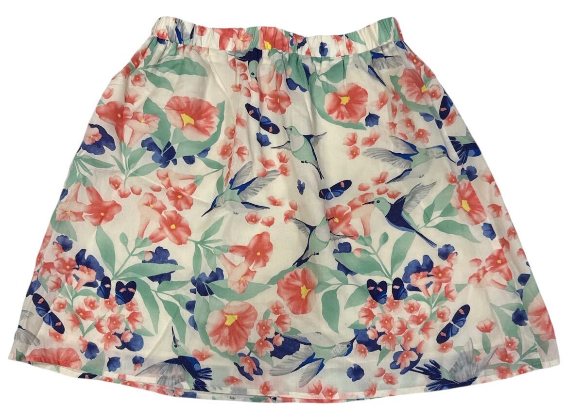 ウエストゴム フラワー 花柄 鳥プリント ミニスカートになり大変お洒落です