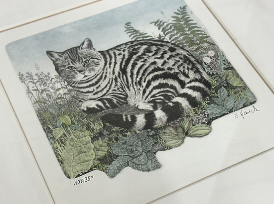 真作 額装 ベルンド・ホーク 猫 イラスト 絵画 ドイツ ネコ アート 現状 札幌市 白石店