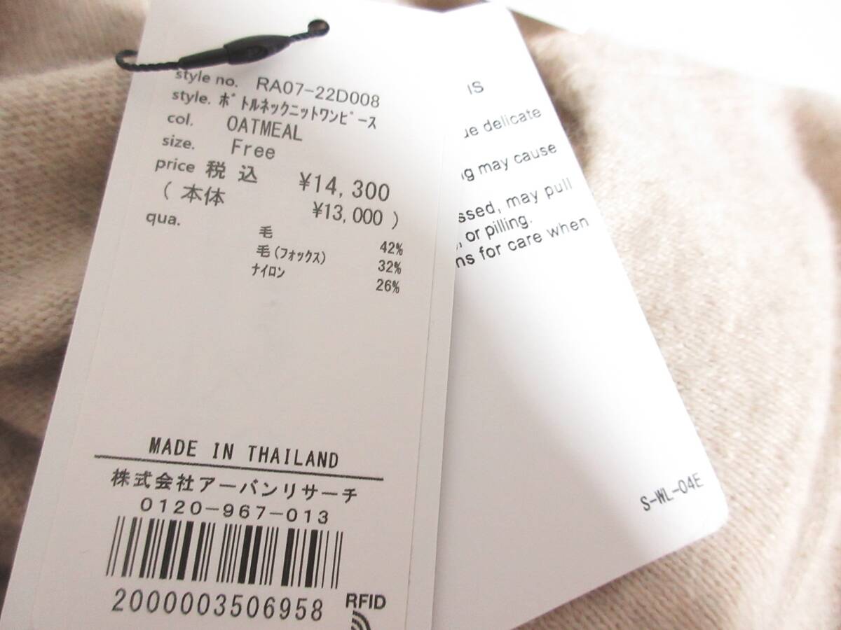 未使用 ROSSO ロッソ ボトルネックニットワンピース RA07-22D008 レディース Free ベージュ kn2508