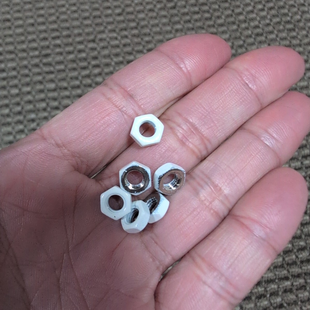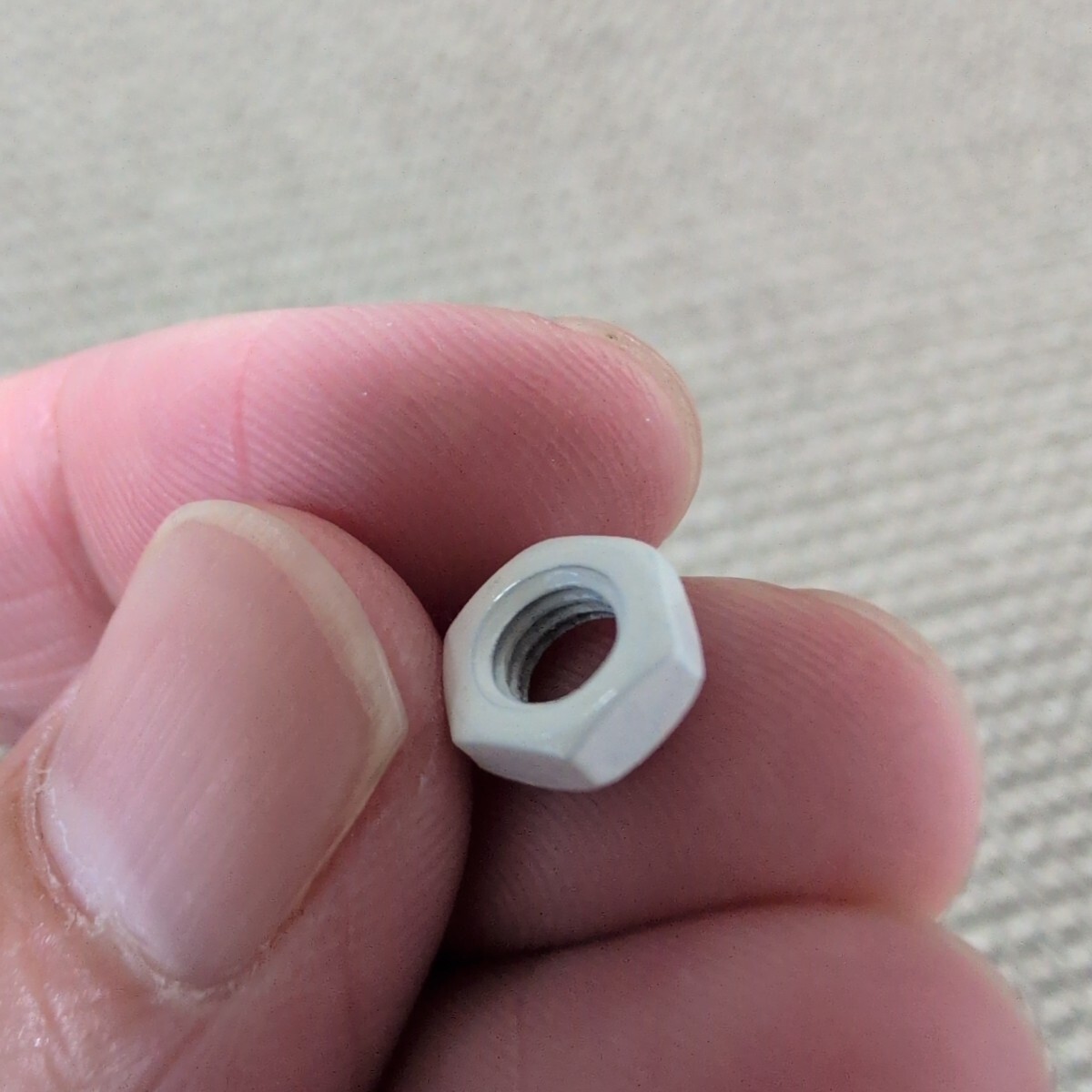 ジャンク品/長期保管/中古/メーカー不明/ステンレスナット/M5/ホワイト/六角対辺8mm/T3mm/塗装は上と横/1P45本入り