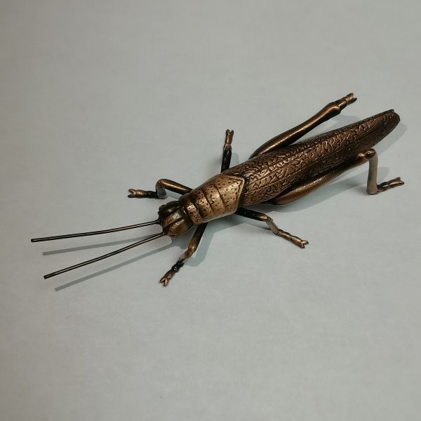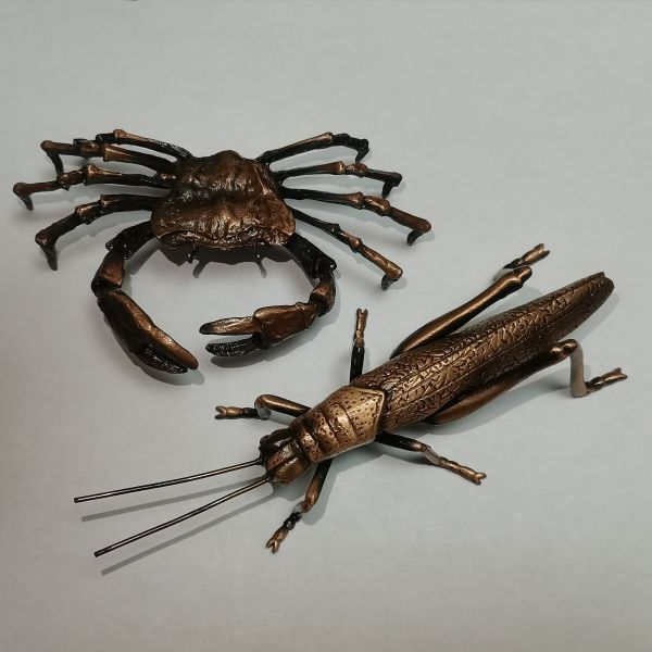 2点セット 真鍮 置物 蟹とバッタ 虫 むし ムシ 昆虫 銅製 赤銅#0111