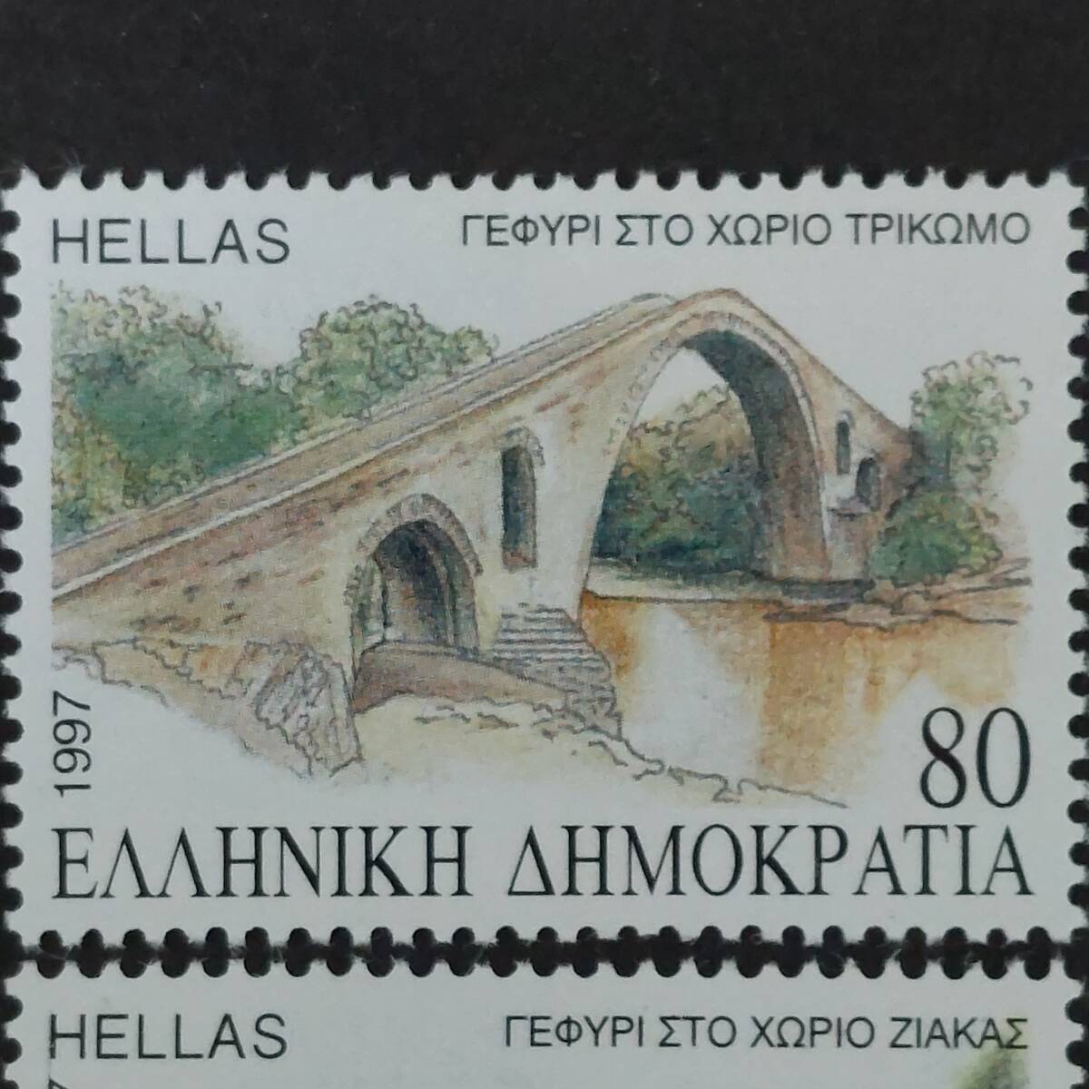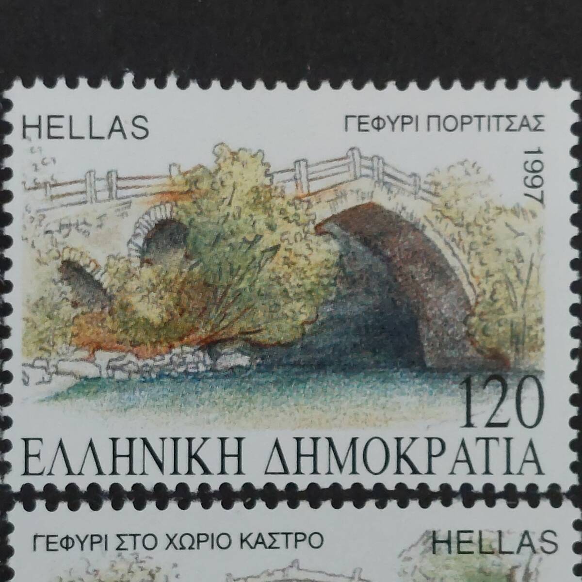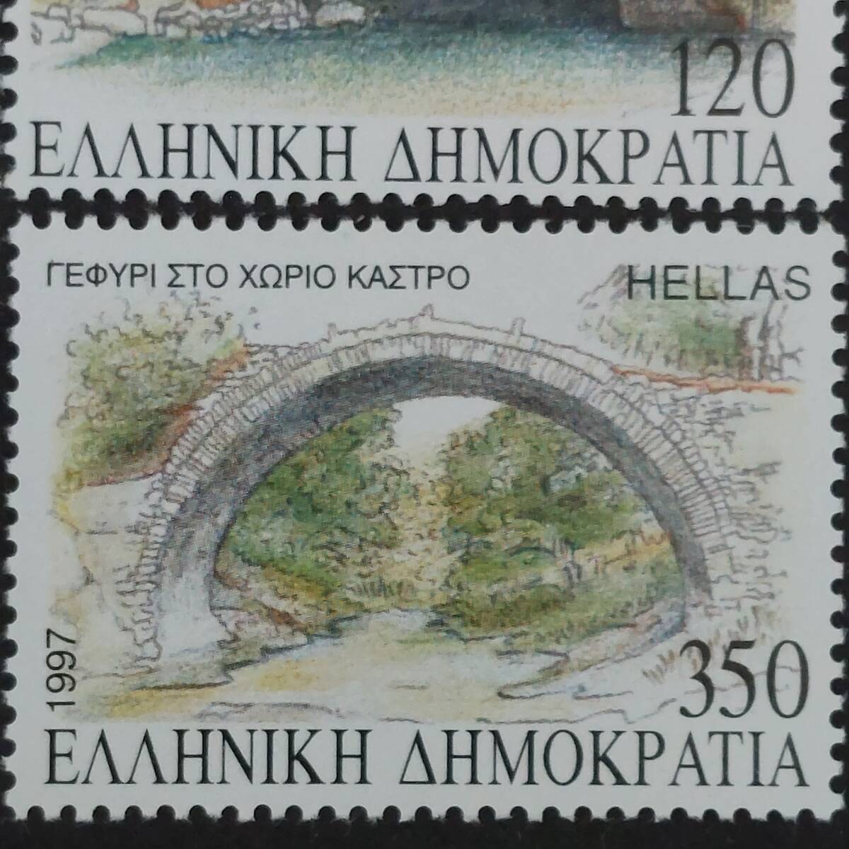 1997年にギリシャが発行した「オスマン帝国支配時代のマケドニア地方の歴史的な石橋のデザイン切手4種完」です。