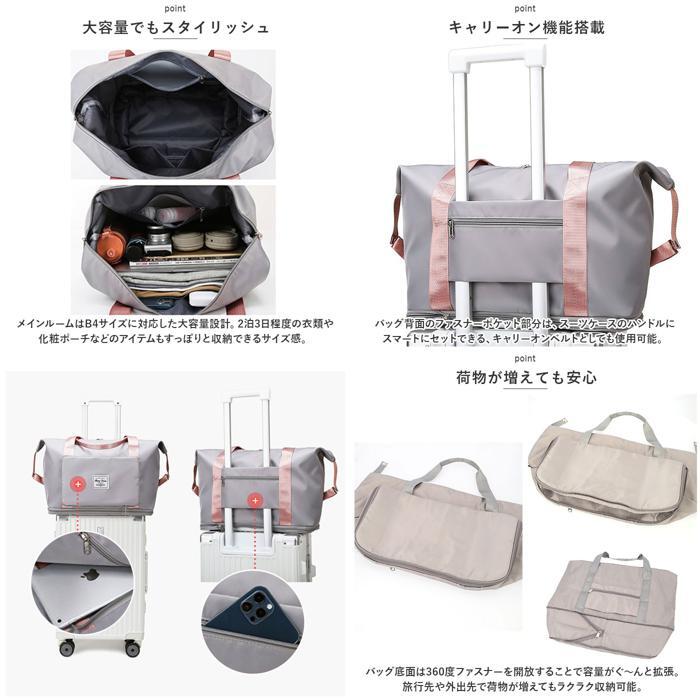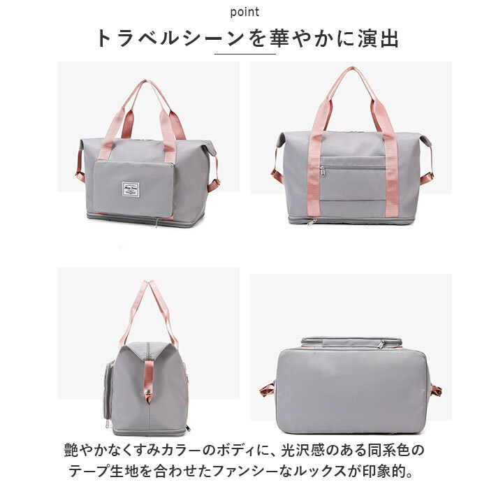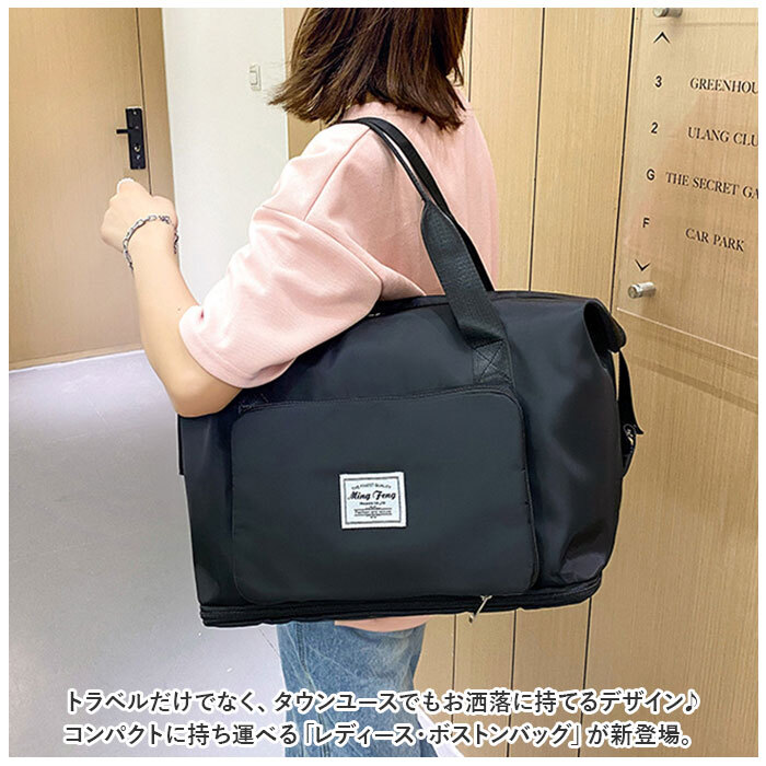 | 商品説明 | ・・トラベルだけでなく、タウンユースでもお洒落に持てるデザイン♪コンパクトに持ち運べる「レディース・ボストンバッグ」が新登場。 ・【トラベルシーンを華やかに演出】 ・艶やかなくすみカラーのボディに、光沢感のある同系色のテープ生地を合わせたファンシーなルックスが印象的。 ・【大容量でもスタイリッシュ】 ・メインルームはB4サイズに対応した大容量設計。2泊3日程度の衣類や化粧ポーチなどのアイテムもすっぽりと収納できるサイズ感。 ・【パッキング作業がスムーズ】 ・バッグ開口部は大きく開く天ファスナー仕様。バッグの中がひと目で見渡せて、荷物のパッキングもスムーズに。 ・【充実のインナーポケット】 ・メインルーム内側には、スマホやコインケースの収納に便利なオープンポケット×2、長財布サイズのファスナーポケット×1を配置。 ・【ジムに最適・はっ水ポケット】 ・長財布サイズのポケットは、運動後のスポーツウェアやタオル、濡れた水着などを分けて持ち帰ることのできるはっ水機能付き。(※完全防水仕様ではありません。水分を多く含んだ物を収納すると、ファスナー開口部から水が染みだすことがあります。) ・【荷物が増えても安心】 ・バッグ底面は360度ファスナーを開放することで容量がぐ~んと拡張。旅行先や外出先で荷物が増えてもラクラク収納可能。 ・【ポーチみたいに持ち運び♪】 ・バッグ前面のポケットに、バッグを折りたたんで小さく収納できるパッカブル仕様。ポーチのようにコンパクトに持ち運べるのが嬉しいポイント。 ・【キャリーオン機能搭載】 ・バッグ背面のファスナーポケット部分は、スーツケースのハンドルにスマートにセットできる、キャリーオンベルトとしても使用可能。 ・【多彩なシーンでお洒落に】 ・旅行用だけでなくフィットネスジム用、荷物が多めになりがちな子育て中の方用のママバッグなど、様々なシーンで大活躍。 ・【ポケット仕様】 ・[メインルーム内部]オープンポケット×2、はっ水機能付きファスナーポケット×1 ・[前面]ファスナーポケット×1(パッカブル機能付き)、内側ファスナーポケット×1 ・[背面]ファスナーポケット×1 |