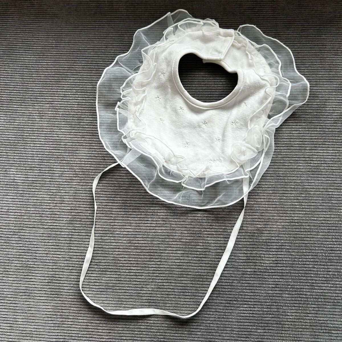 - 特徴: フリル付きの帽子とドレス、スタイ