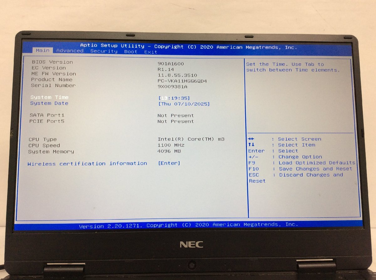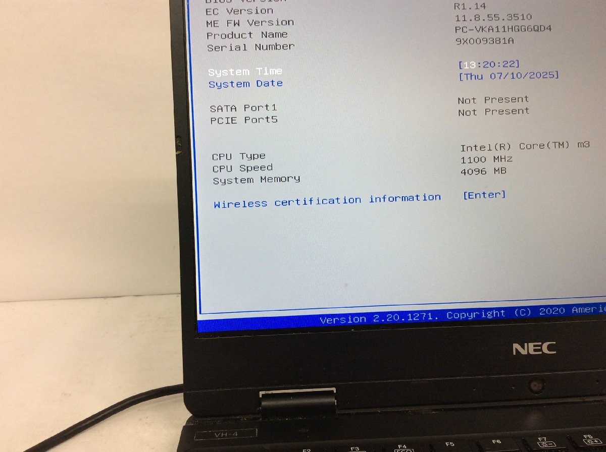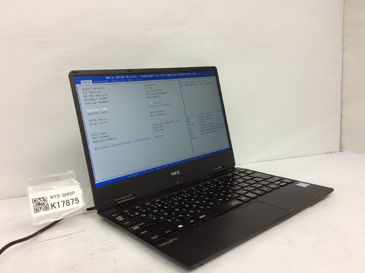 ジャンク/ NEC PC-VKA11HGG6QD4 Intel Core m3-8100Y メモリ4.1GB ストレージ無し 【K17875】