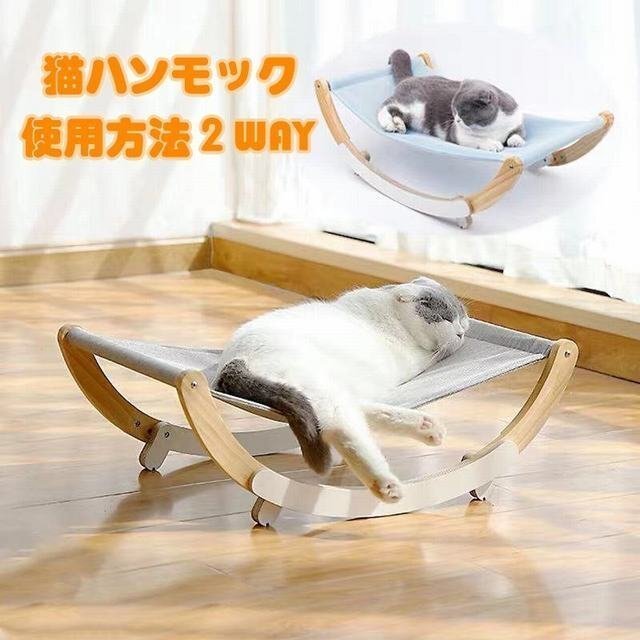 【商品内容】:猫ハンモック 【サイズ】:(約)59.2cm×37cm×20cm 【耐荷重】:(約)10kg 【生地素材】:リネン(グレー) ポリエステルメッシュ(ブルー)
