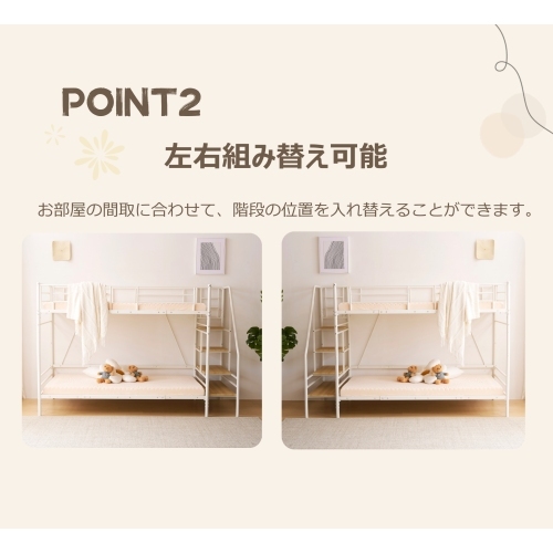 • 【安全に昇り降りできる階段タイプ】足元の安定している階段タイプは昇り降りしやすく、一段一段安定感があり、大人でもお子様でも安全にご利用いただけます。レイアウトに合わせて階段を左右どちらかを選んで取り付けることができます。