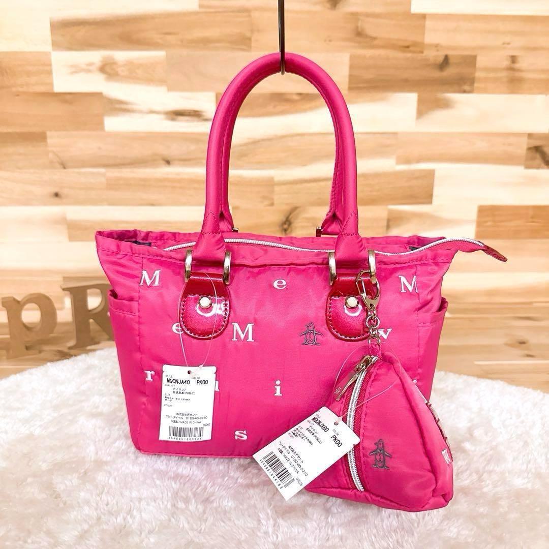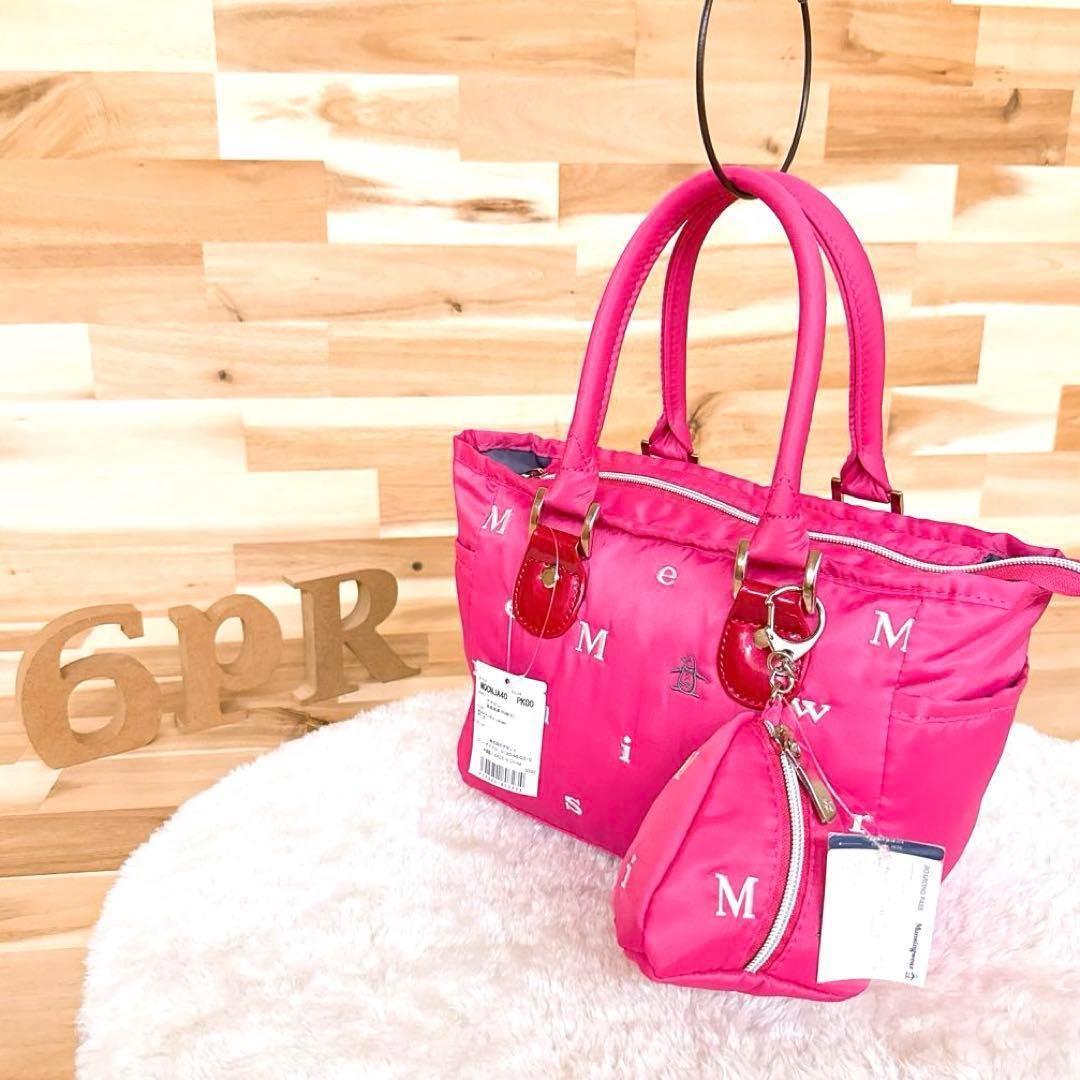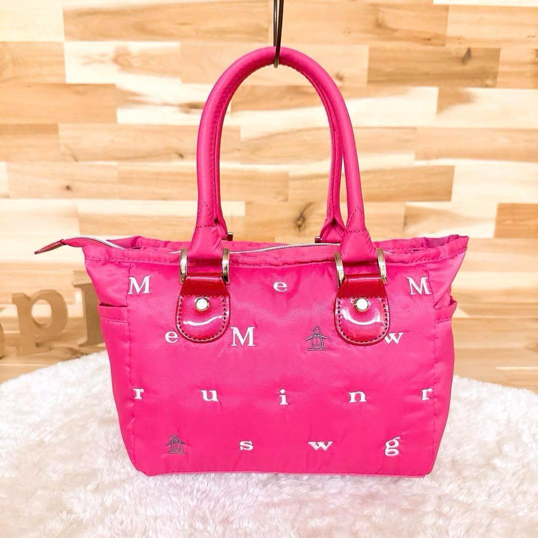 程良い張り感と自然な光沢のあるナイロン生地。ボディにはブランドネームのアルファベットとブランドアイコンのペンギンが刺繍されたキュートなデザイン。持ち手付け根部分のエナメル加工がアクセントになったMunsingwearのトートバッグです。