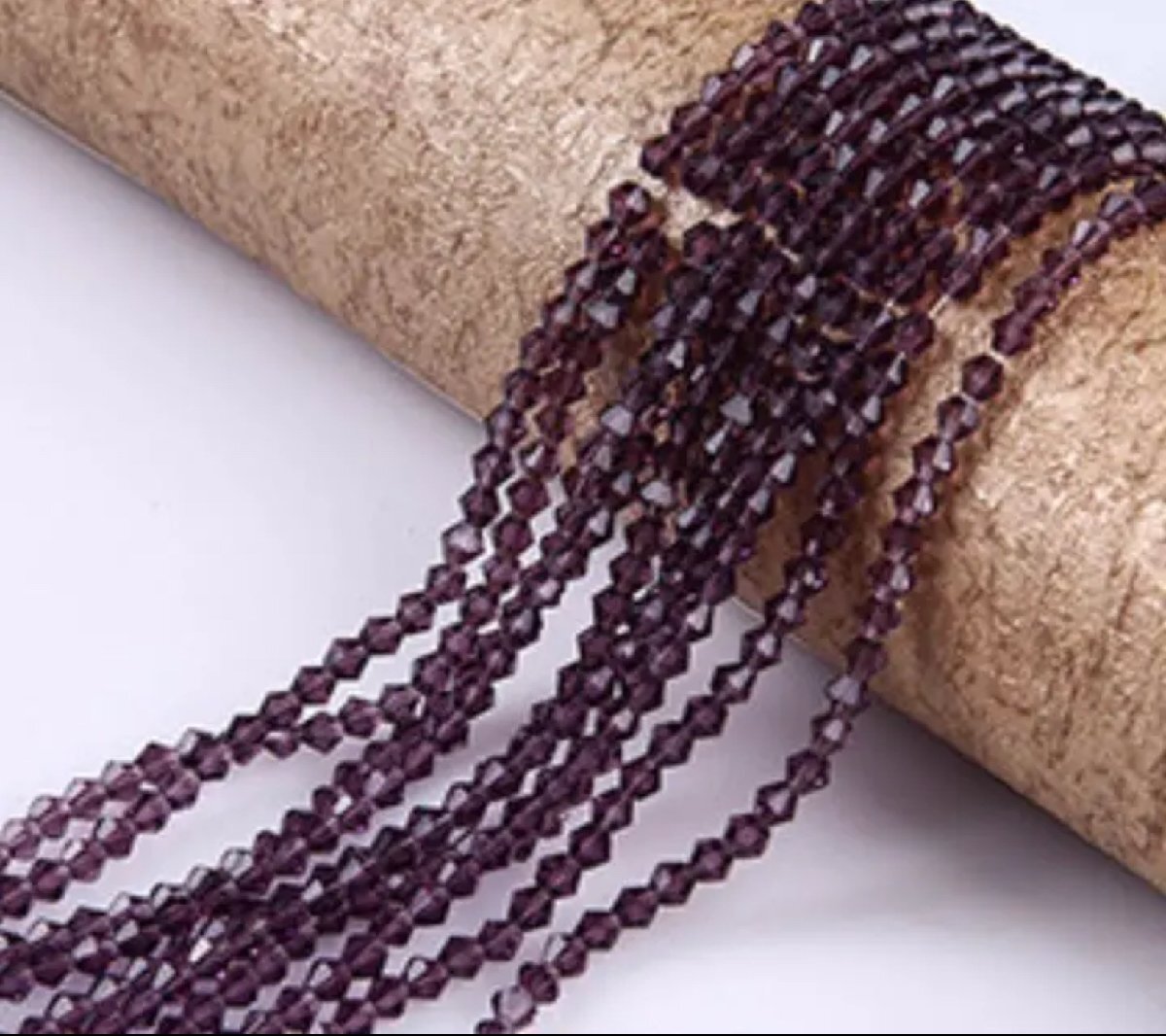 送料込3本組 2mmそろばん型ビーズ ハンドメイド クリスタル ガラス 紫色