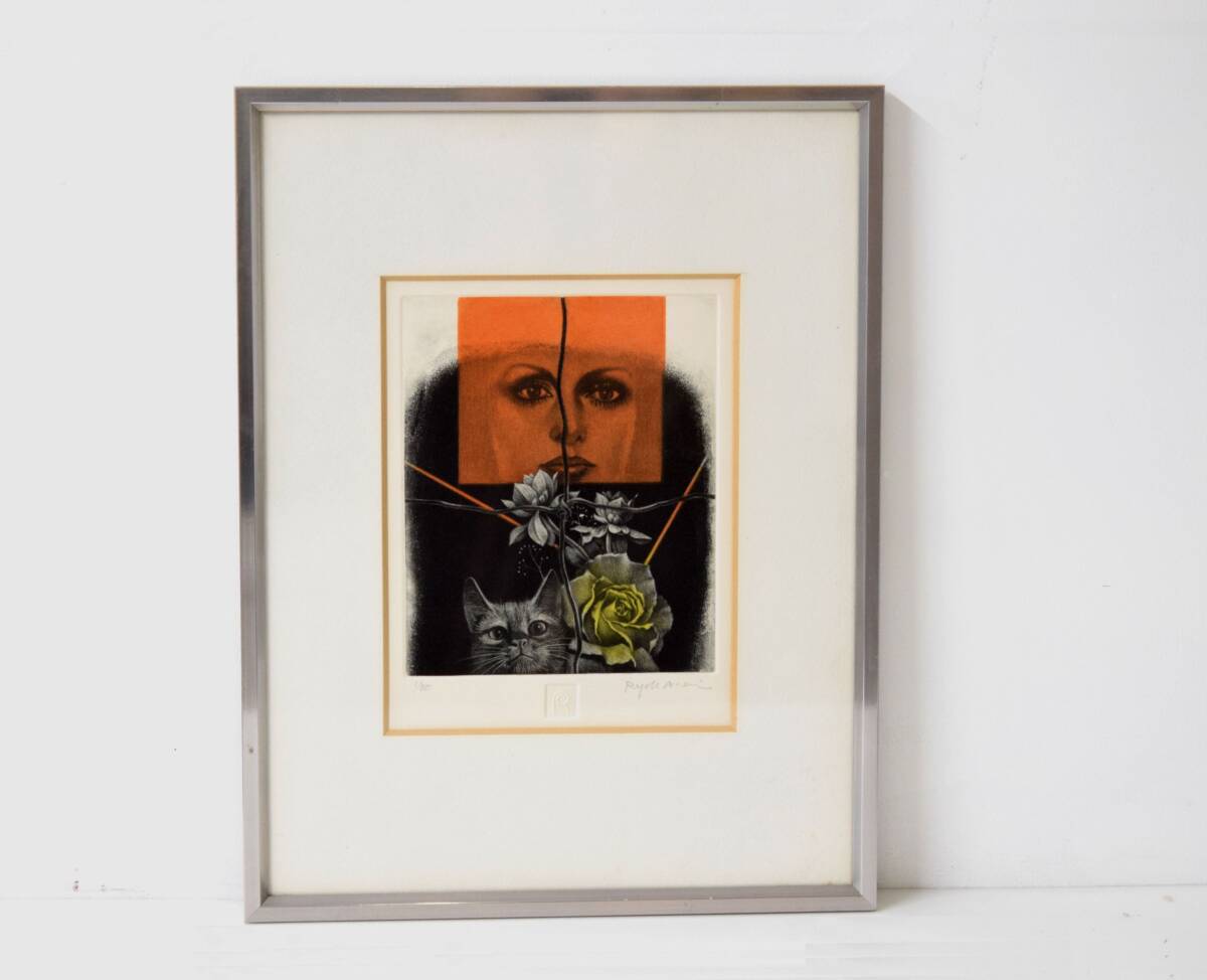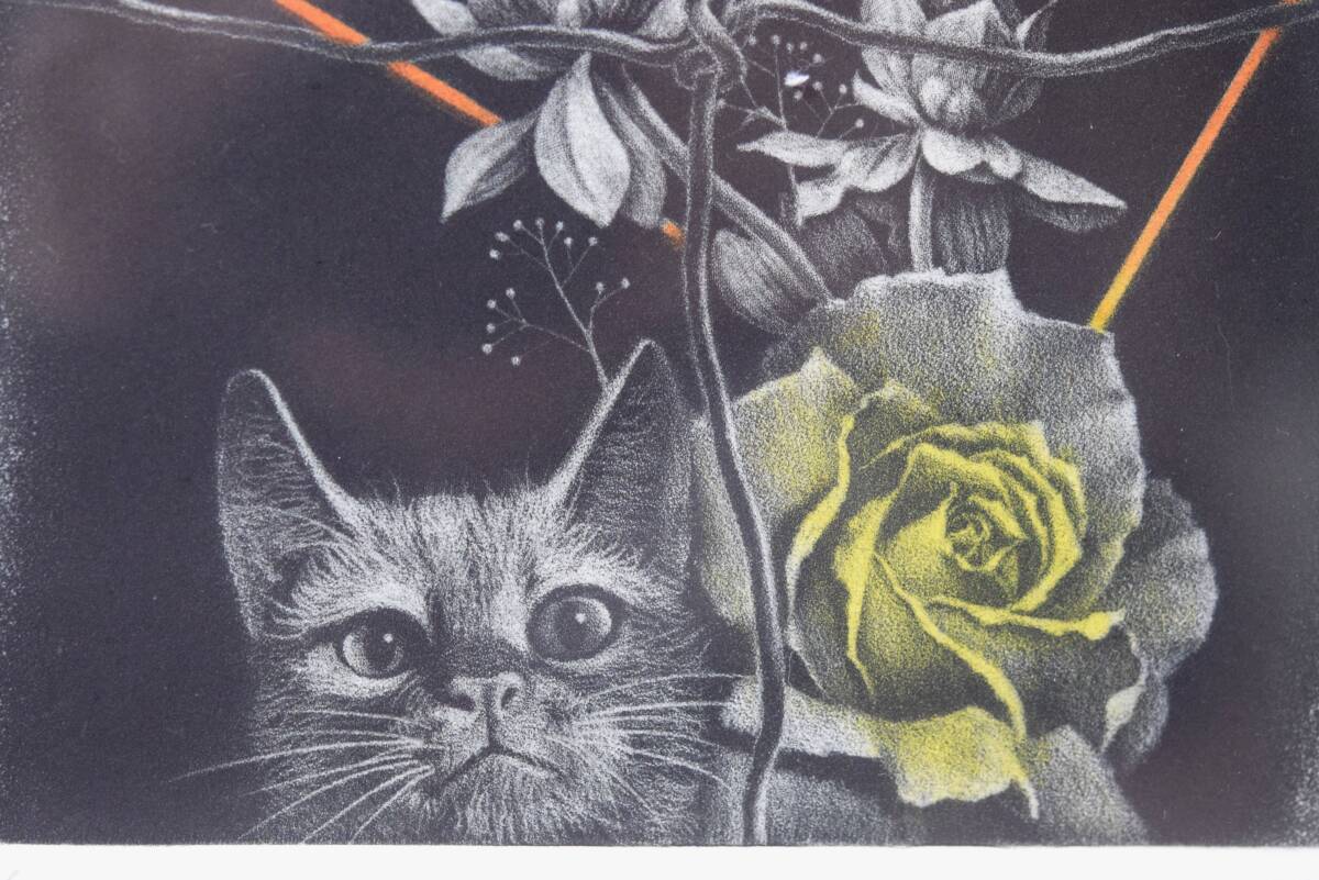 新井亮(アライリョウ)銅版画 1/30 仮題「猫と薔薇と女」