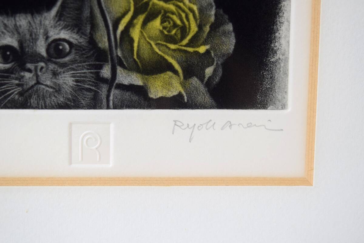 ■ 新井亮(アライリョウ)銅版画 1/30 仮題「猫と薔薇と女」■
