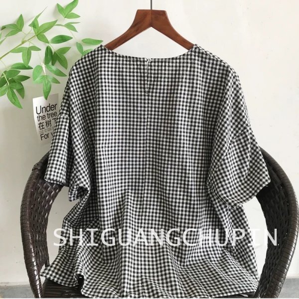 sg ゆったり フリーサイズ ワイシャツ チュニック トップス チェック柄 綿100% 大人可愛 ナチュラル ゆったり