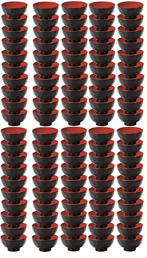 ☆業務用漆器耐熱4寸亀甲汁椀黒内朱約径117XH61mm100個