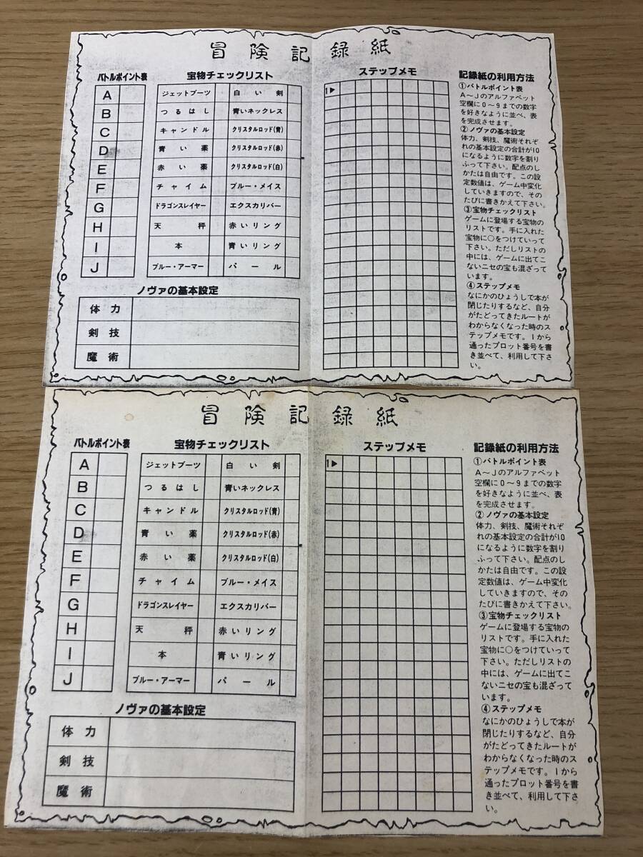 冒険記録紙は2枚ありますが、恐らく1枚は原本のコピーだと思われます(紙質が違うため)。
