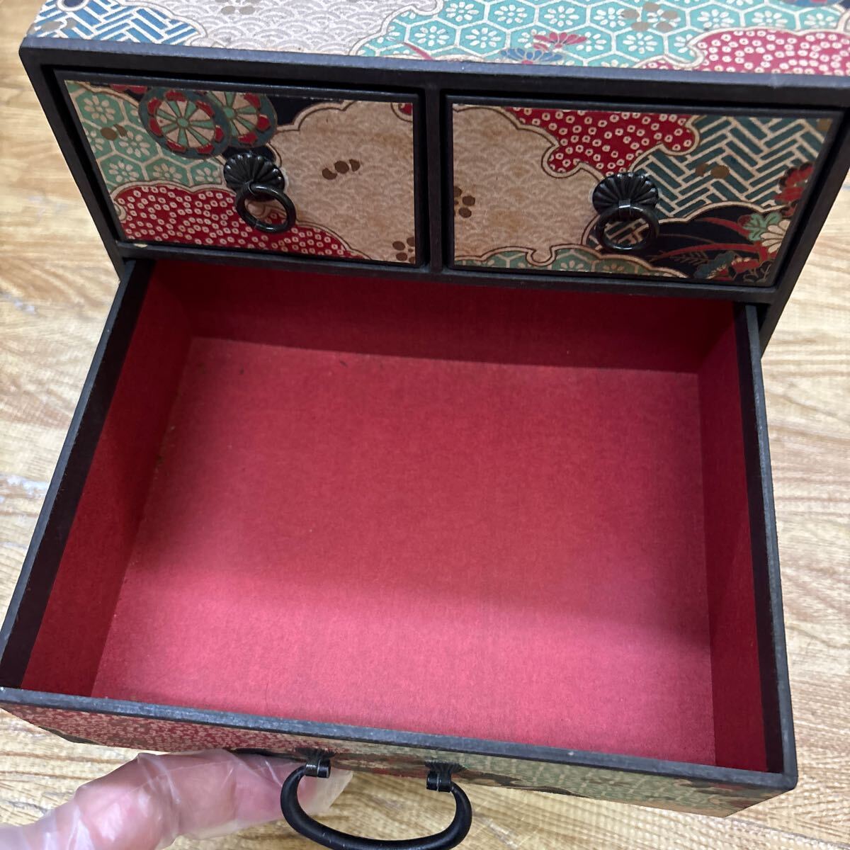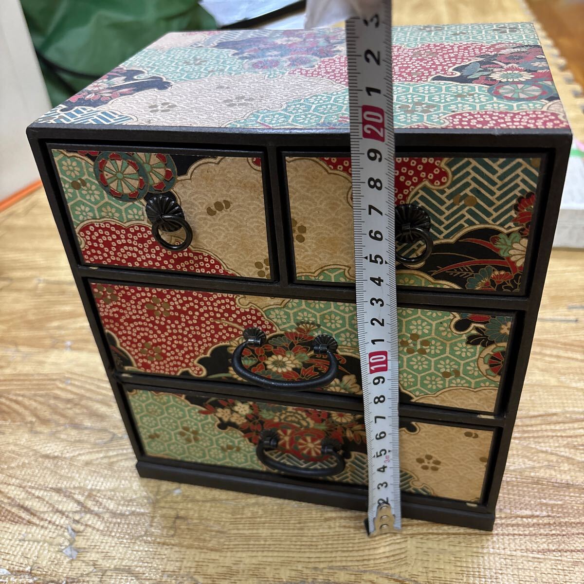 A2-234 和紙 3段 小物入れ 収納箱 昭和レトロ W18×D13.5×H19.5