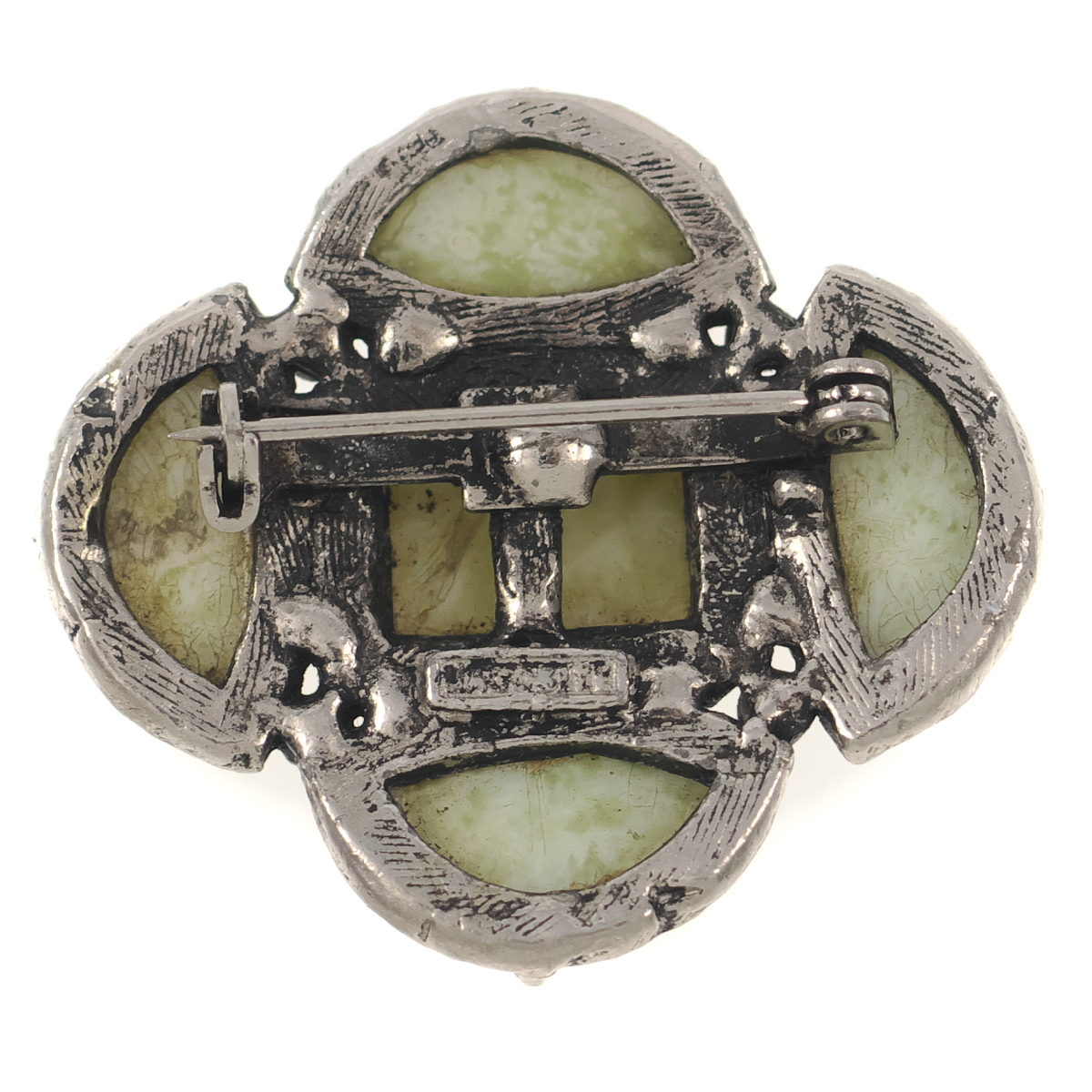 UK4014◆【JACOBITE】◆ うすいグリーン系ストーン 色石 ケルト十字 クロスモチーフ イギリス 英国 ◆ ヴィンテージブローチ