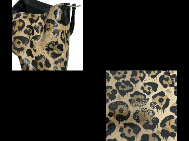 コーチ COACH トートバッグ 36102 - レザー ベージュ×黒 豹柄 バッグ