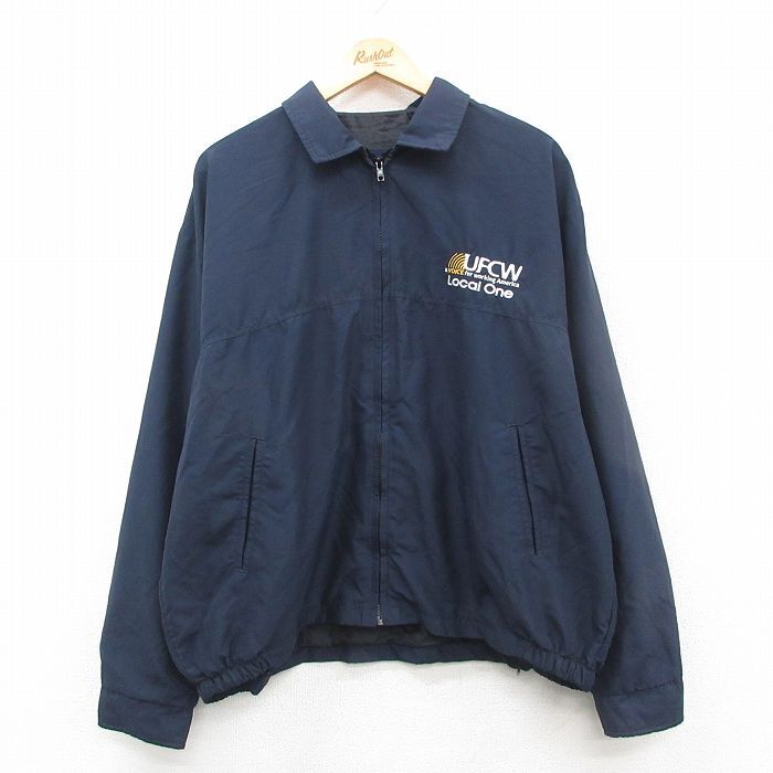 【商品名】 XL★古着 キングルイ 長袖 ジャケット メンズ 00年代 00s UFCW 刺繍 大きいサイズ USA製 紺 内側キルティング