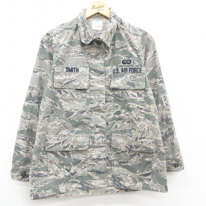【商品名】 古着 長袖 ミリタリー ジャケット レディース 00年代 00s USエアフォース ユーティリティ デジタルタイガーカモ USA製 グレー 迷彩