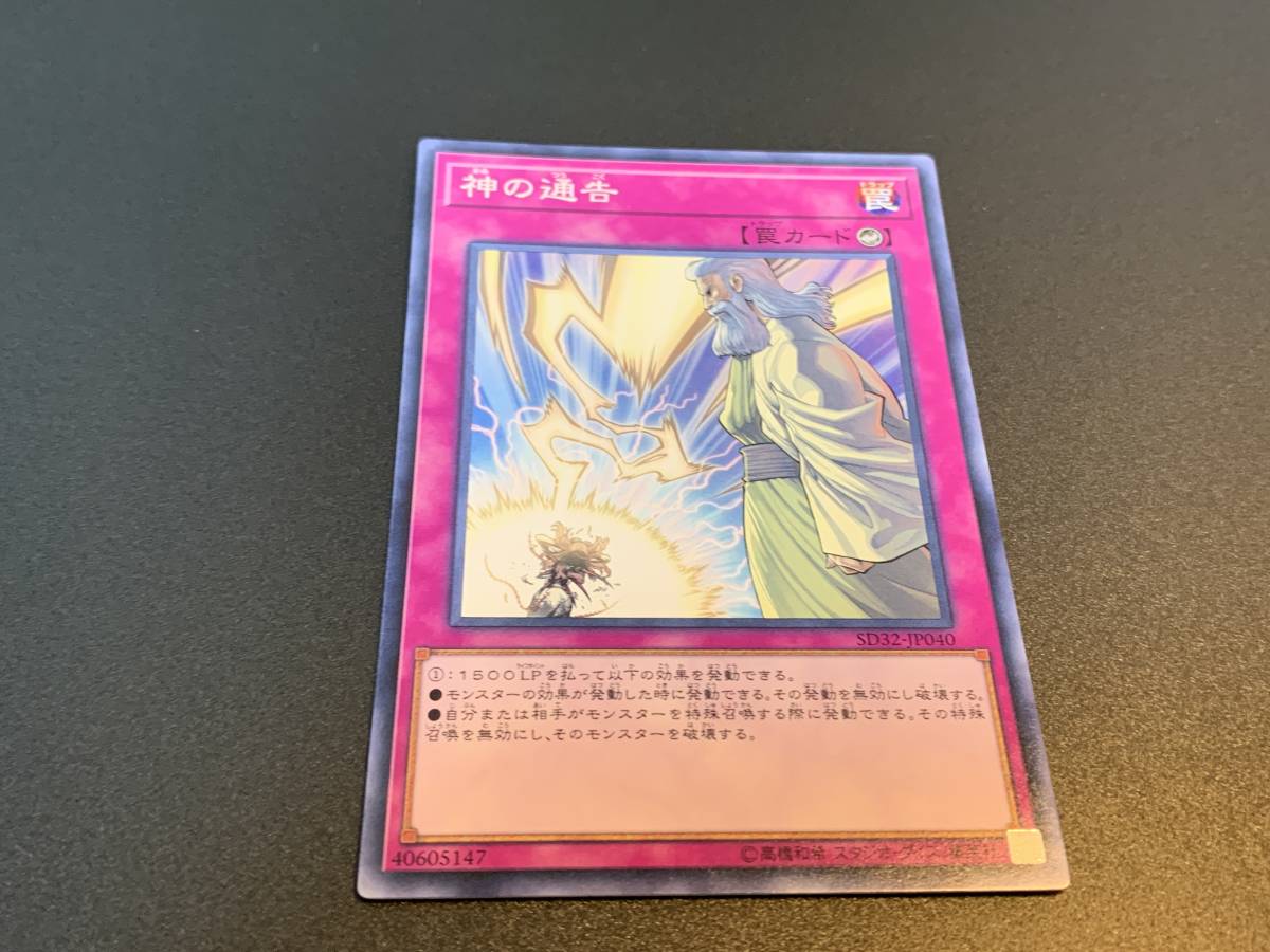 | 商品説明 | 商品説明、注意事項全てご覧の上で入札をお願いします。 入札して頂いた場合、上記に同意して頂いたと判断致しますので予めご了承下さい。 他の商品との同梱も可能です。その際は商品名とご一緒に取引ナビで必ずご連絡下さるようお願いします。 6枚までは定形郵便84円となります。それ以上ご希望の場合はその旨お伝え致します。 商品到着後、必ず受取連絡は行うようお願い致します。 又、不手際があった際は取引ナビでご連絡下さるようお願い申し上げます。 ■商品状態 【神の通告/型番ランダム】ノーマルです。 このカードの状態は「B~B+」です。 カードの状態は下記のようにS~Dにて表しております。 又、出品物によっては下記表現ではない場合が御座いますが 少しずつ修正していきますのでご理解下さいませ。 「S/ミント」 (未使用・パックから開けたばかりの状態。傷 汚れがほぼない物。) 「A/ニアミント」 ( 開封直後によくある綺麗な状態。若干の傷、痛みがある状態) 「B/エクセレント」 (多少の傷、痛みが見受けられたりする状態。) 「C/ベリーグッド」 (目立つ傷などがあったりする状態。スリーブをつけてプレイする分には差し支えのない状態。) 「D/プアー」 (傷、汚れがかなり目立つ状態。傷を気にされない方向け。) 「+-」で状態の補足を行う場合が御座います。 +=該当のランクより若干良いが1ランク上げるほどではない物。 -=該当のランクより若干低いが1ランク下げるほどではない物。 レリーフ特有の凹凸、反りに関しましては上記状態には反映しません。 又、海外版のお品は作りが粗いため、初期傷等が多い場合が御座います。 出来る限り当方が丁寧にチェックを行っていますが、人の手によるものですのでどうしても見落としなどがある場合が御座います。 過度に気にされる方は入札をご遠慮下さいませ。 表現の仕方など人それぞれ感じ方が違います。上記を踏まえた上で御入札を宜しく御願い致します |