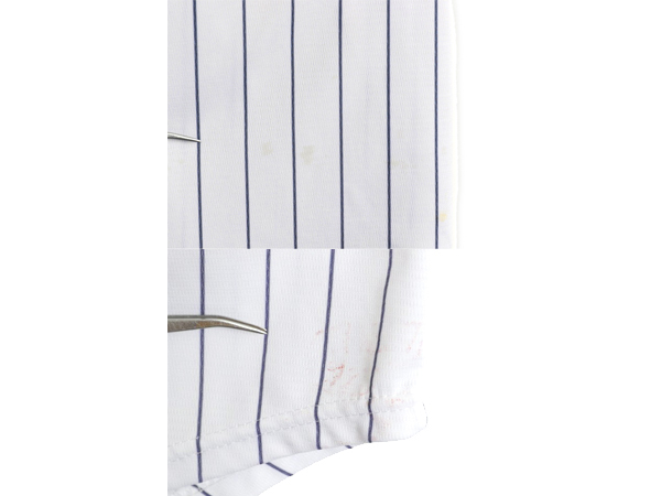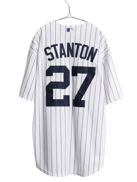 MLB オフィシャル NEW YORK YANKEES ニューヨーク ヤンキース の半袖ベースボールシャツです。 ボディーは、Majestic ATHLETIC(マジェスティック) 1950年代創業、MLB公式ユニフォームのサプライヤーとして 全球団のユニフォームにロゴを配することを許可された唯一のブランド 素材表記タグ欠損の為、前取り扱い商品参照します 素材は、100% POLYESTER ( ポリエステル ) 伸縮性、やや透け感のあるジャージ素材を使用しています。 軽量で通気性の良い COOL BASE クールベーステクノロジーを採用 吸湿発散性のインターロック生地を使用しています 左胸にMLB、人気チーム、ヤンキースのワッペン バックに2010年 ~ 現在まで活躍している ジャンカルロ・スタントン(Giancarlo Stanton )のネームと背番号27 シーズンMVPをはじめ、数々の個人タイトル、 規格外のパワーで、ホームランを量産する人気選手 ホワイト × ネイビーの好配色チームカラー ヤンキースストライプがクールなグッドデザイン そのままでももちろん、重ね着にもお勧め 中にパーカーやスウェットを差し込める 大きいサイズXL 着まわしの利く商品です。 |