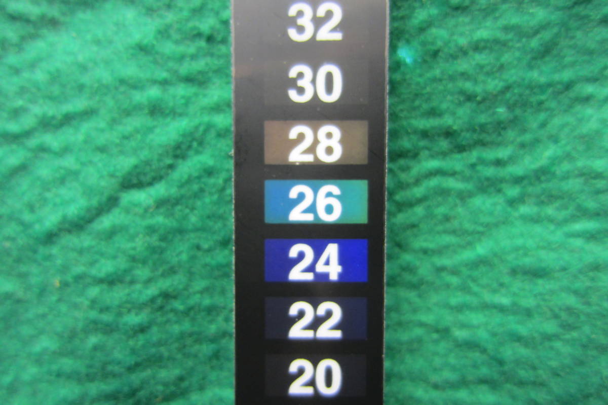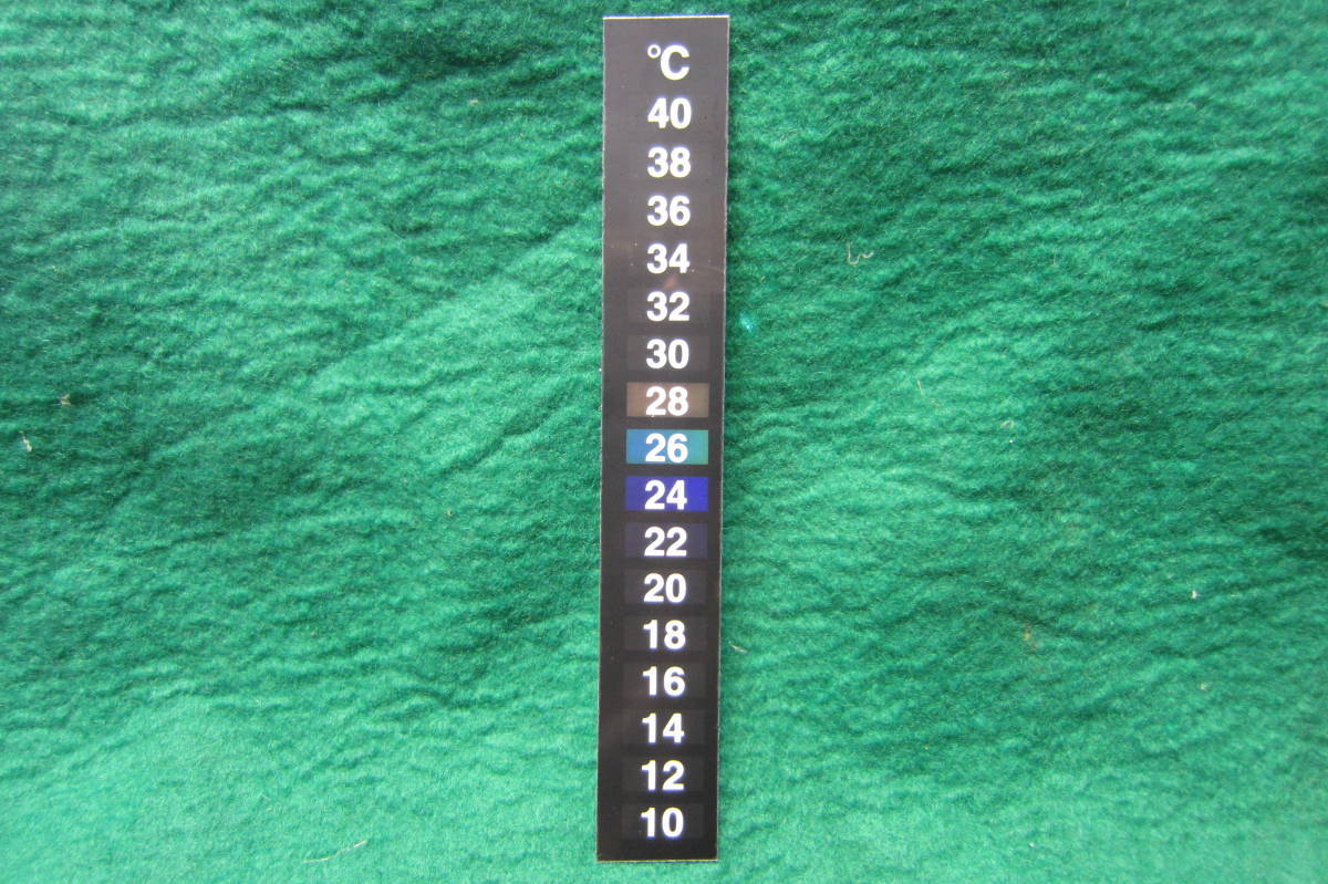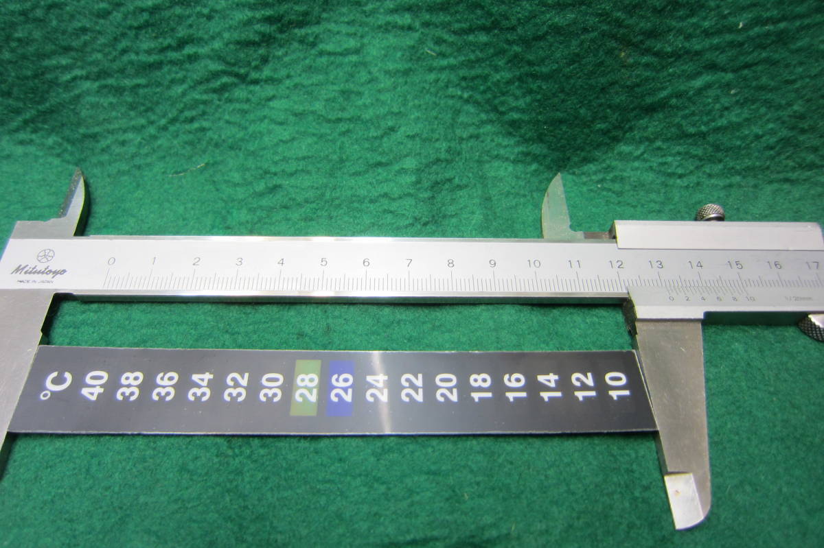 シール型の温度計です該当する温度の場所の色が変化しますします。