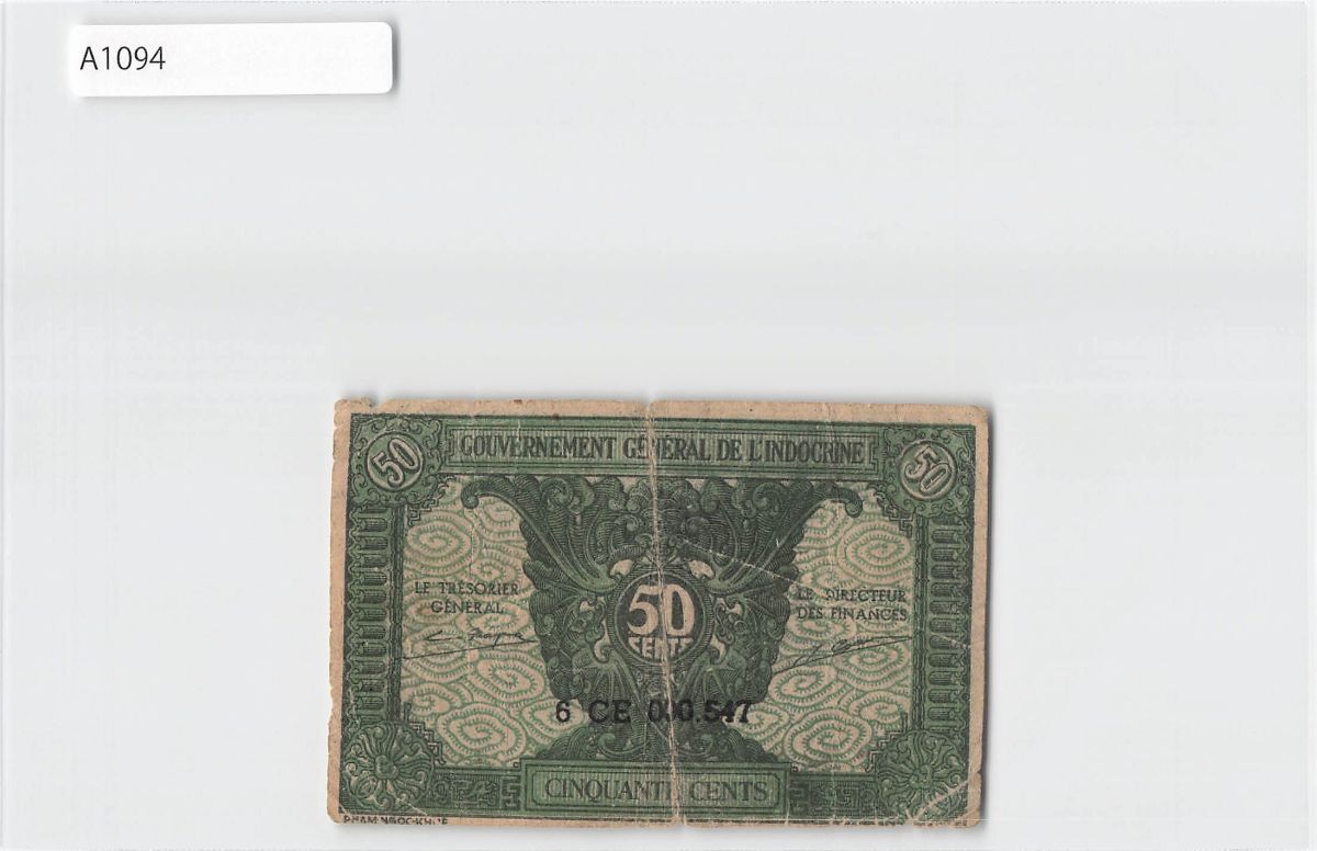 *[令]フランス領インドシナ紙幣 50セント(1942)仏領インドシナ、ベトナム[A1094]7n1