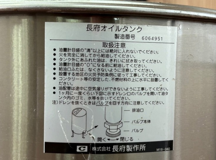 13 福岡発 長府製作所 ステンレス灯油タンク 約82L 中古 灯油ボイラー 丸型 中古 メンテナンス済