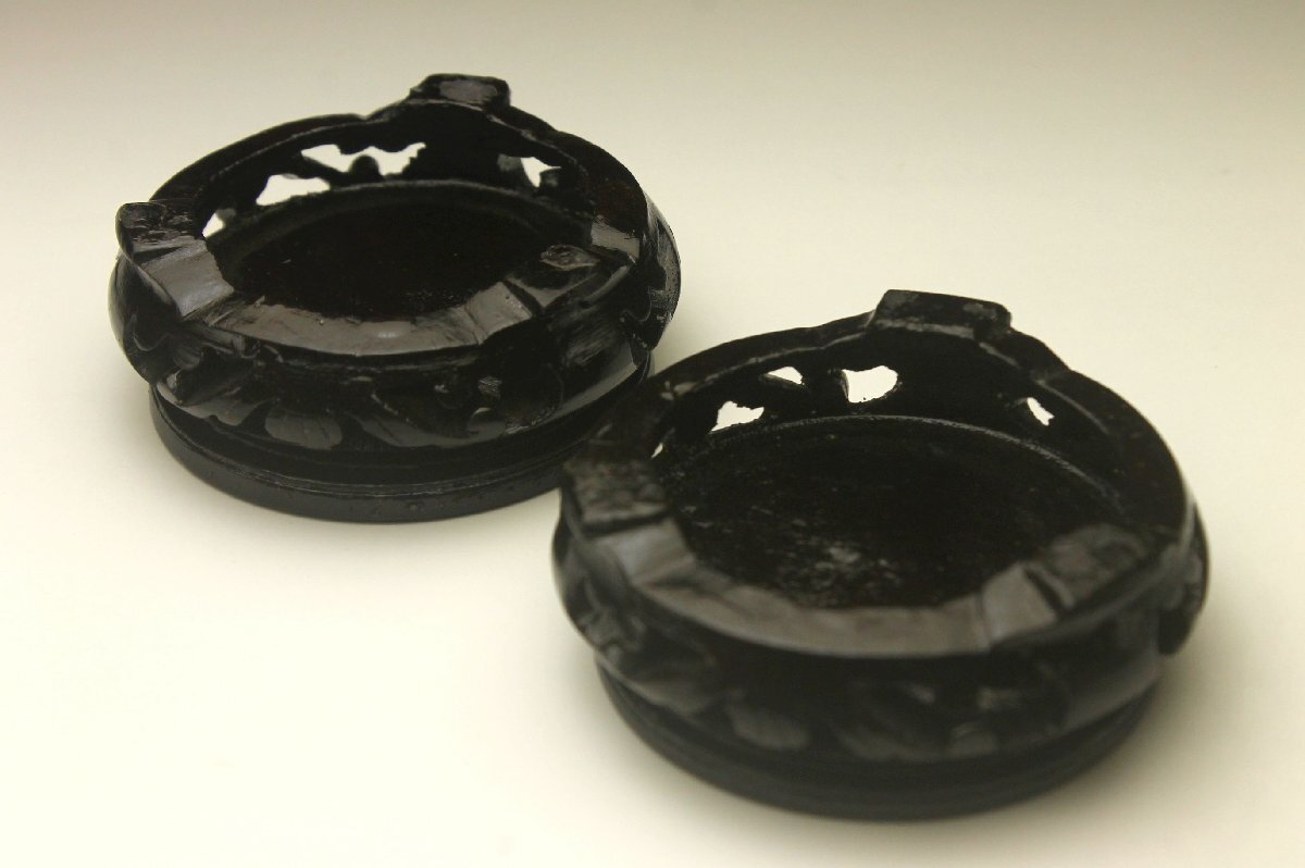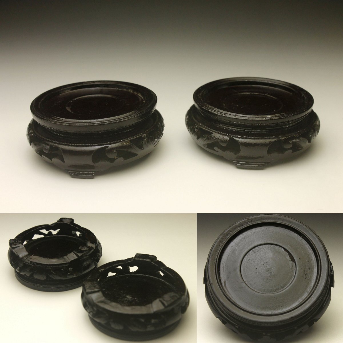【余韻】 天然木製 丸台 急須台 花台 瓶台★美品<同梱可>