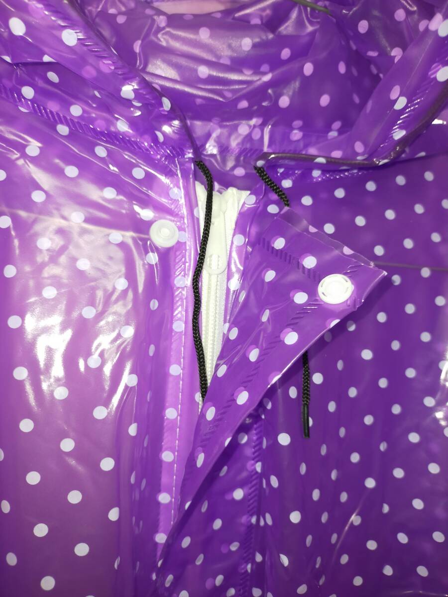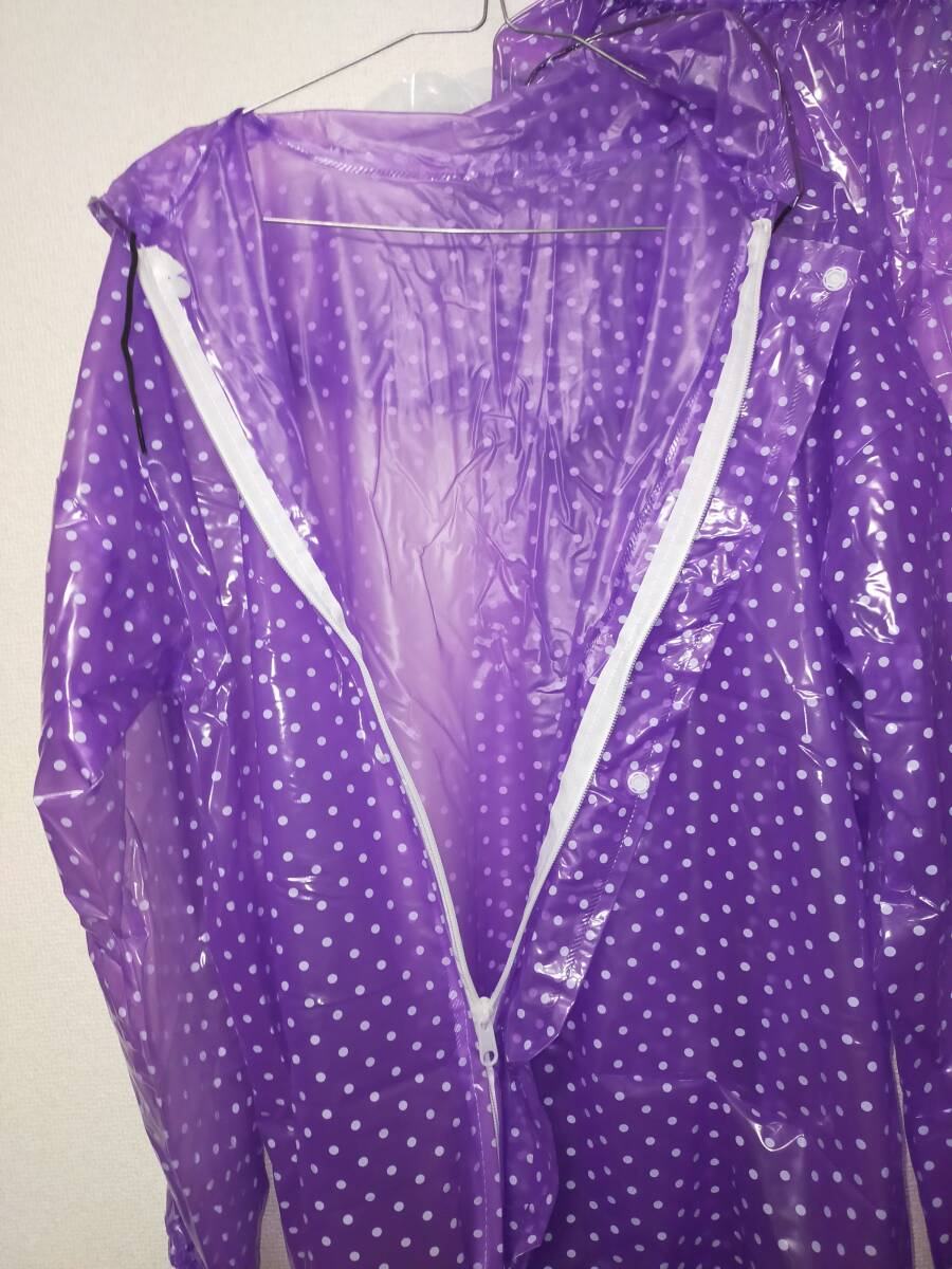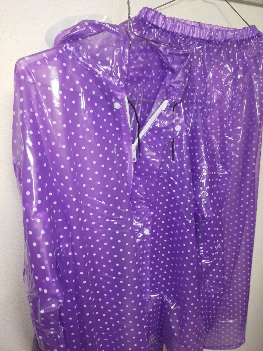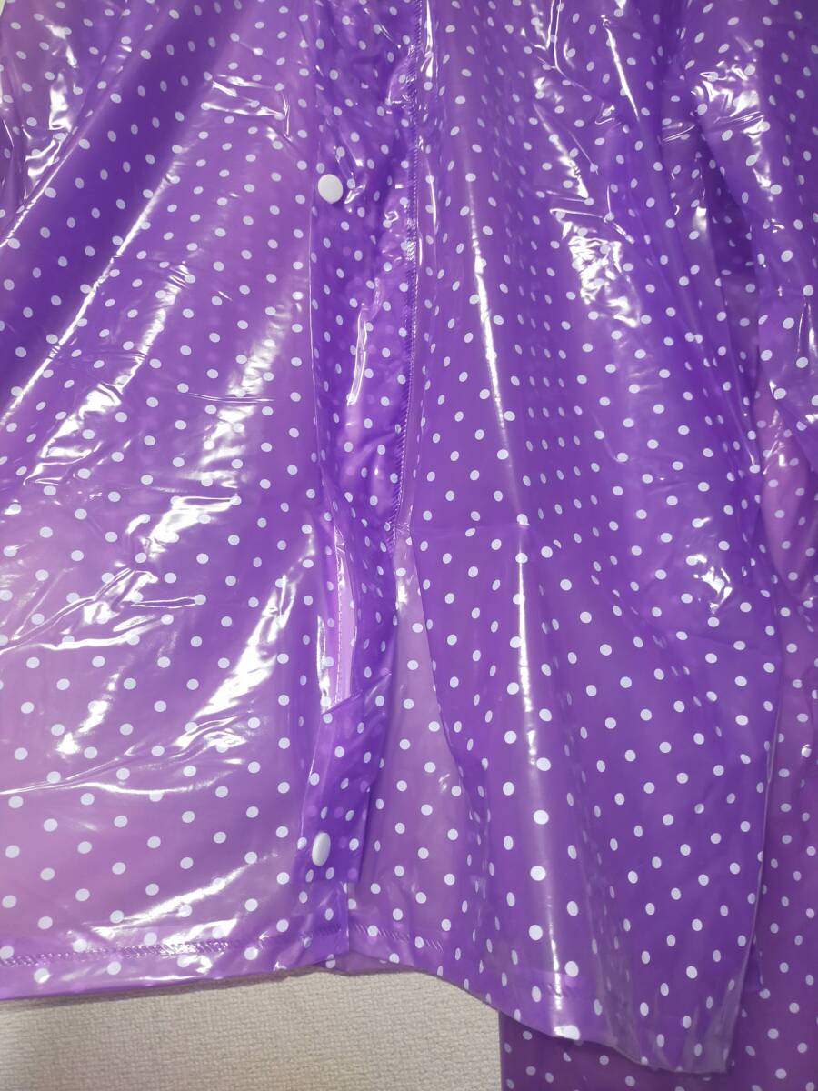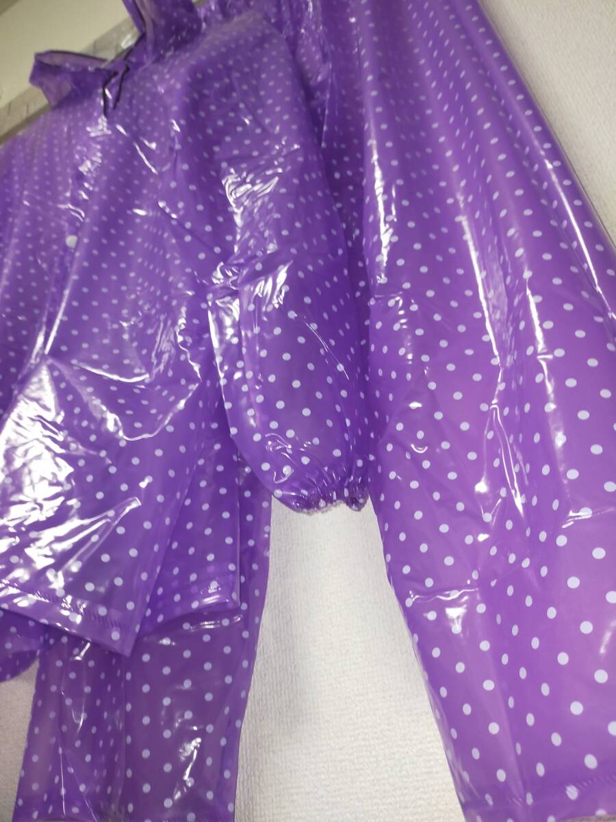 水玉模様パープル ビニール合羽 レインコートズボンセット レインウェア カッパ