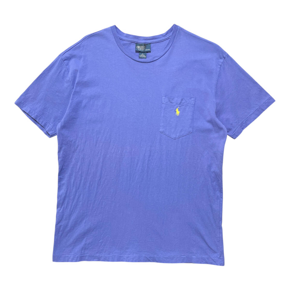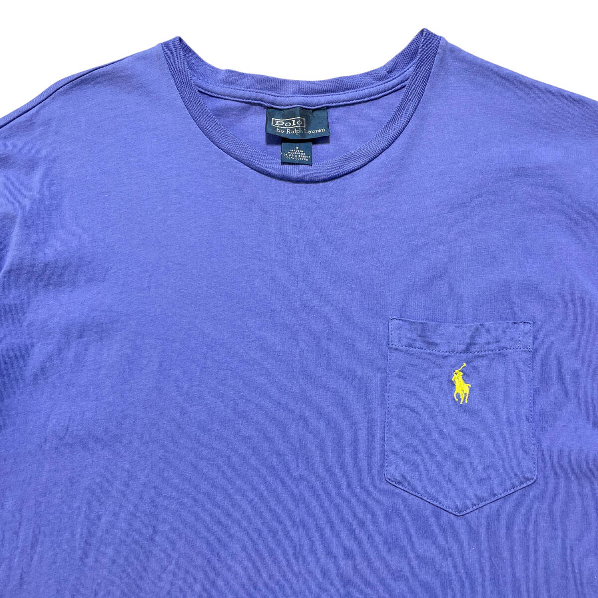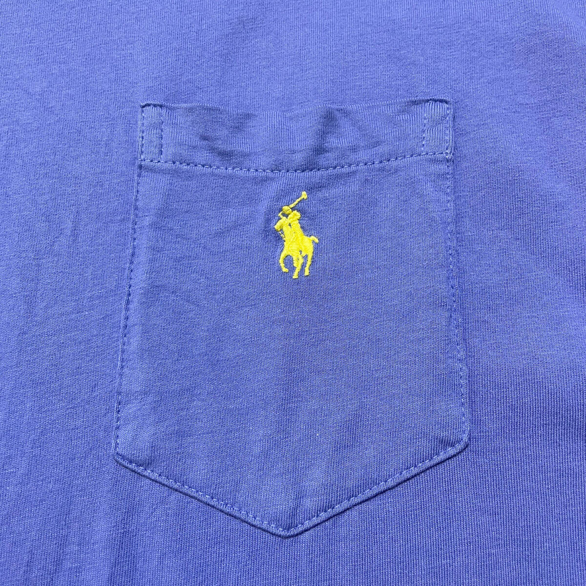 USA 古着 Polo by Ralph Lauren ポロバイラルフローレン 刺繍 Tシャツ ポケT ワンポイント ブルー メンズS クルーネック BA3949