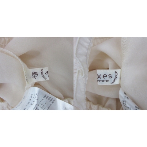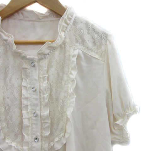 アクシーズファム axes femme シャツ ブラウス 半袖 ラウンドネック レース フリル M ライトベージュ /YS32 レディース