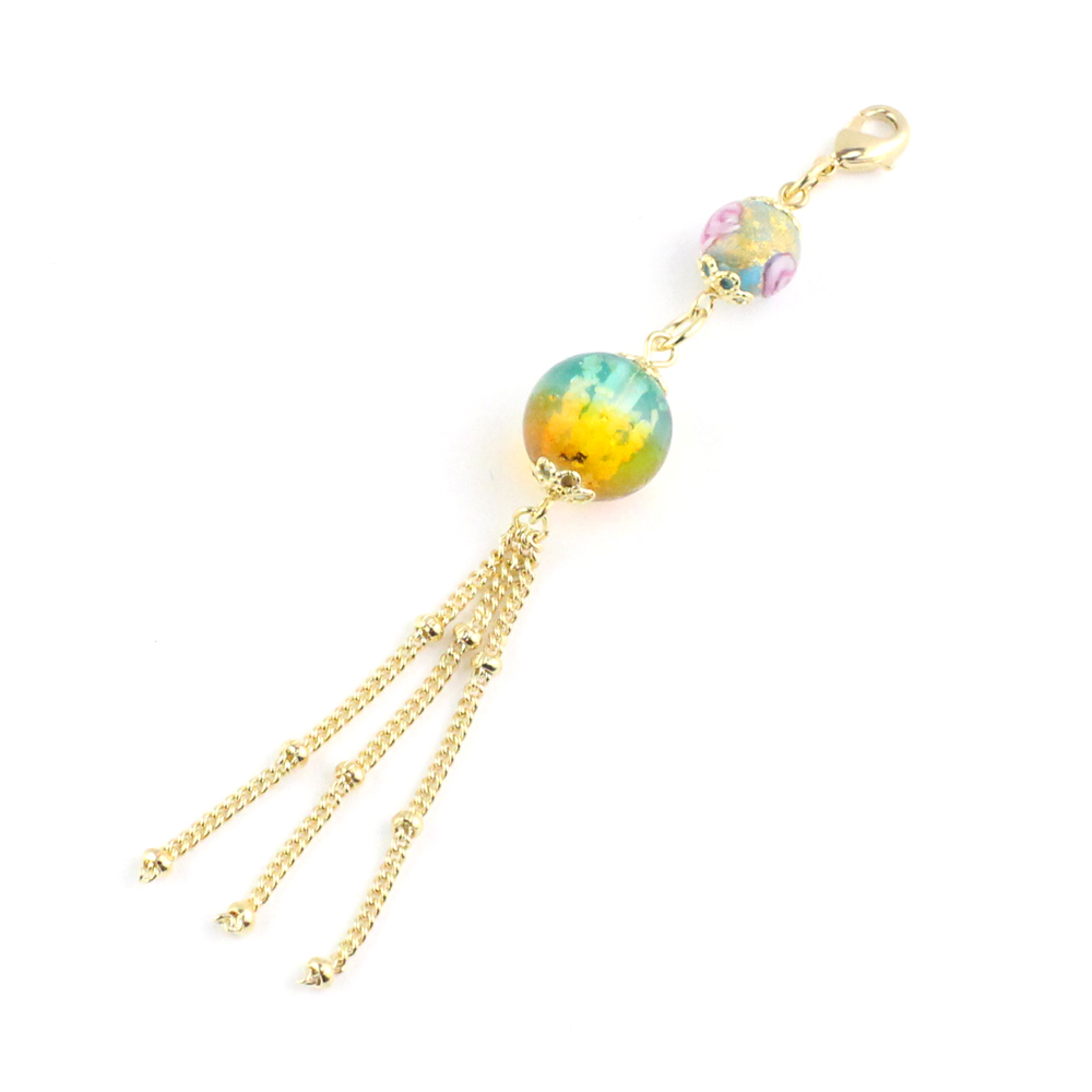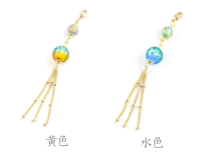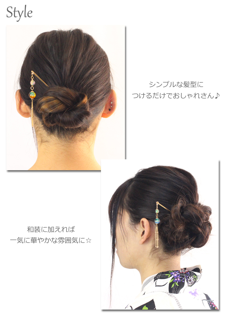 商品説明 | 透明グラデーションビーズとチェーンタッセルがゆらゆらと・・・♪ かんざし本体は、アレンジにもワンポイントにも使いやすい長さとなっております。 細やかな丁寧な作りの高品質な日本製です。 チャームは取り外し可能です。チャームのみの販売もあります。 |