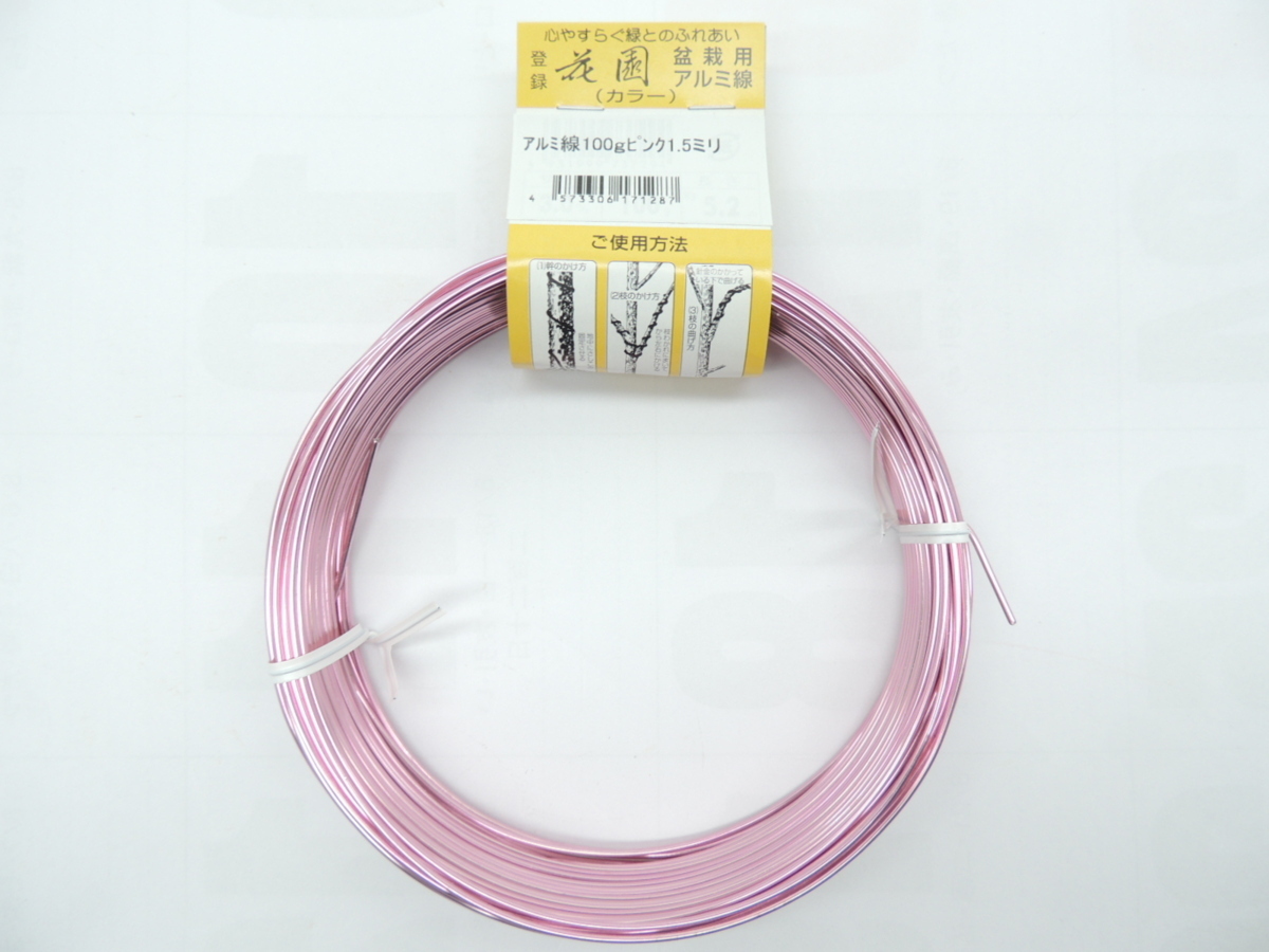 アルミ線 アルミ針金 ピンク 太さ1.5ミリ×長さ約20.9m 100グラム 1巻 | |
