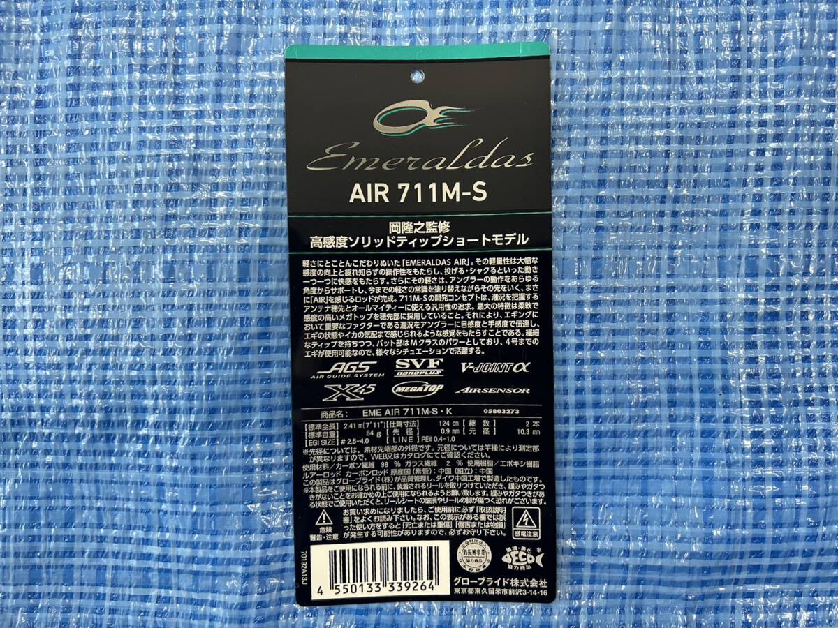 軽さにこだわりぬいた「EMERALDAS AIR 」。軽量性は大幅な感度の向上と疲れ知らずの操作性をもたらす。さらには、アングラーの動作をあらゆる角度からサポートし、今までの軽さの常識を塗り替える。■711M-S・・・岡隆之監修 高感度ソリッドティップショートモデル。711M-Sの開発コンセプトは、潮況を把握するアンテナ穂先とオールマイティーに使える汎用性の追求。最大の特徴は柔軟で感度の高いメガトップを穂先部に採用していること。それにより、エギングにおいて重要なファクターである潮況をアングラーに目感度と手感度で伝達し、エギの状態やイカの気配まで感じられるような感覚をもたらすことである。繊細なティップを持ちつつ、バット部はMクラスのパワーとしており、4号までのエギが使用可能なので、様々なシチュエーションで活躍する。