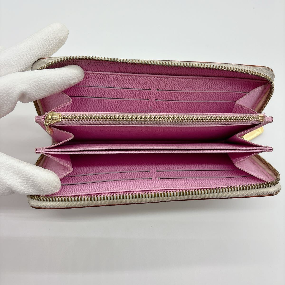 □状態:内側はとても綺麗で使用感少なめです。外側は全体的に角スレやファスナー周りの汚れ等あります(画像参照)。ファスナー開閉はスムーズです!