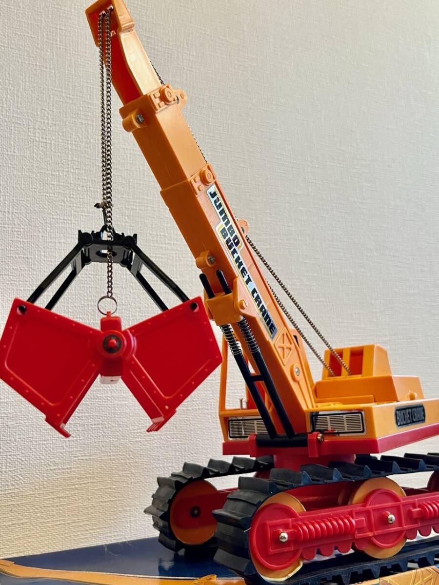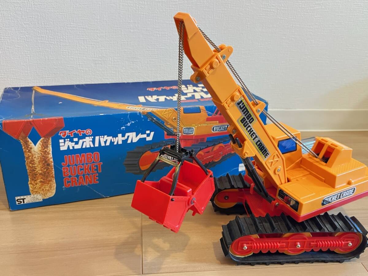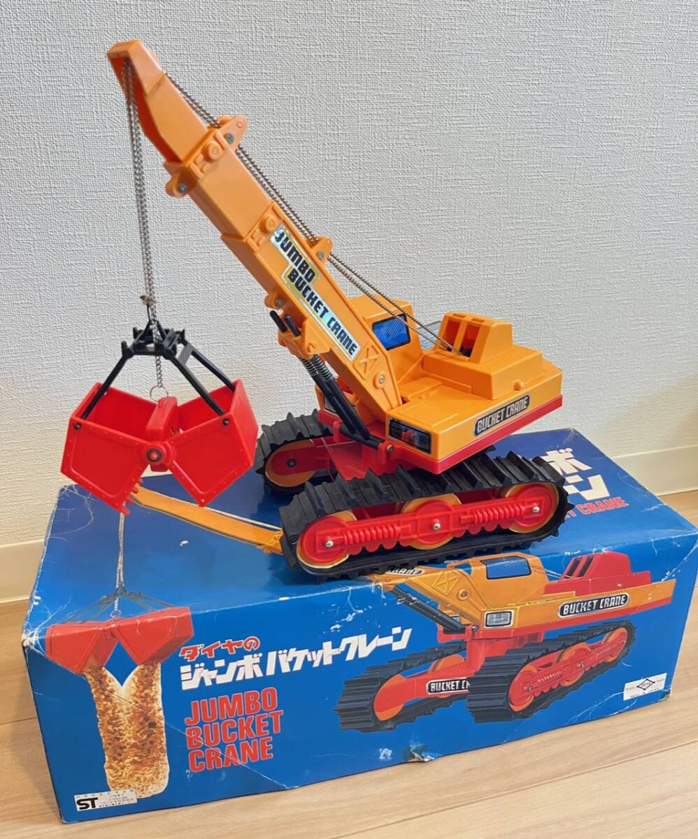 40年近く前の寺井商店製、大型クレーンです。かなりよく出来ている玩具で今でも十分に遊べる子供向け玩具です。