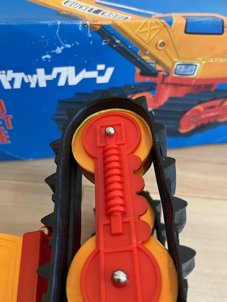 バケットの開閉、ブームの伸び縮み、巻上げ等のギミック問題なし。ご自身で更にクリーニング頂けましたらより綺麗になるかと思いますが、経年劣化により軽度箱痛み、キャタピラの一部が固着しています。
