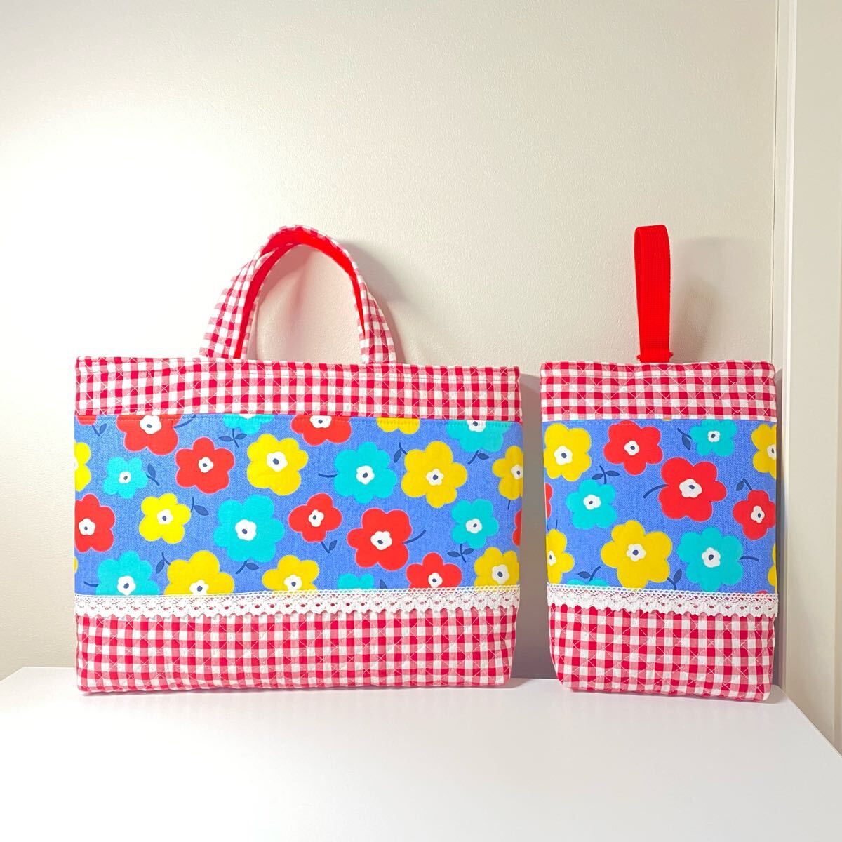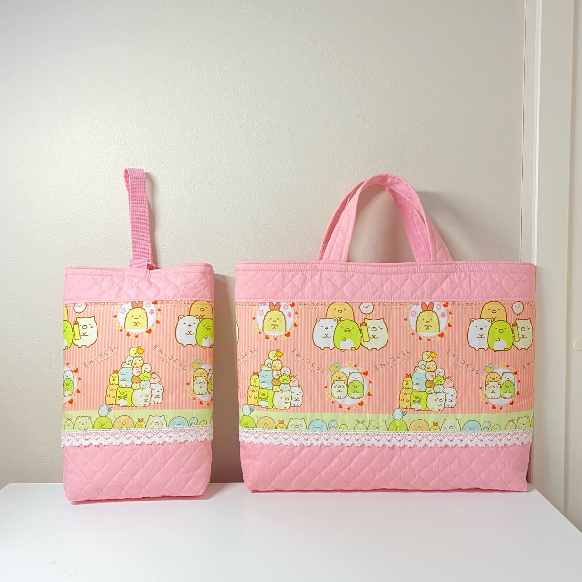 【お名前刺繍サービス!】〈2点セット〉★レッスンバック+シューズケース_E