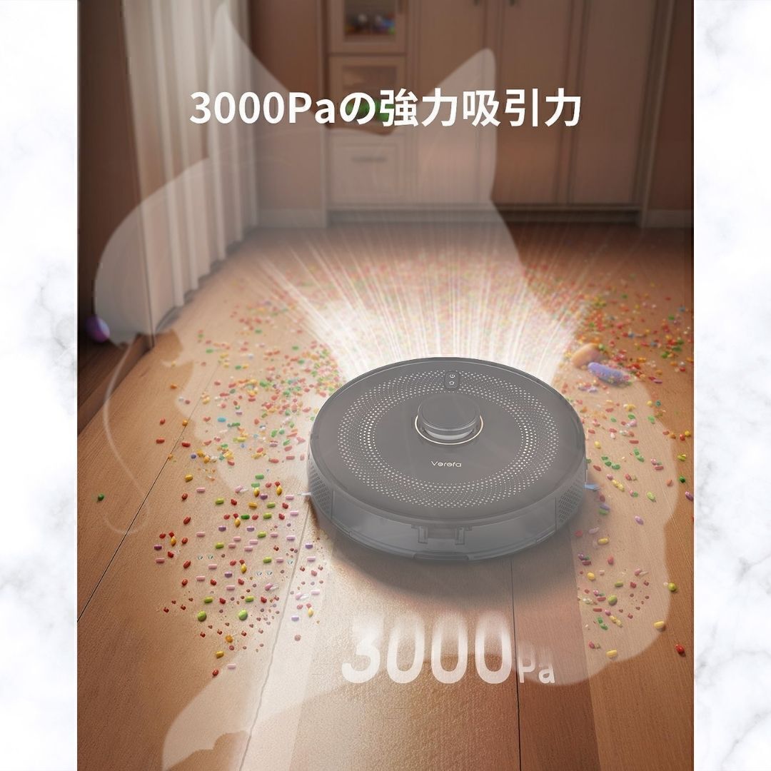 3000Paの吸引力で細かいゴミも逃さない