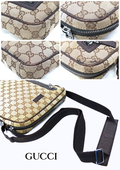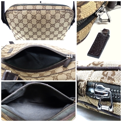 グッチ GUCCI ショルダーバッグ 前ジッパー GGキャンバス×本革 ベージュ 斜め掛け 縦長タイプ