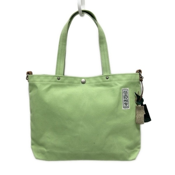 イチザワシンザブロウハンプ 一澤信三郎帆布 トートバッグ - コットン、レザー ライトグリーン×ブラウン バッグ