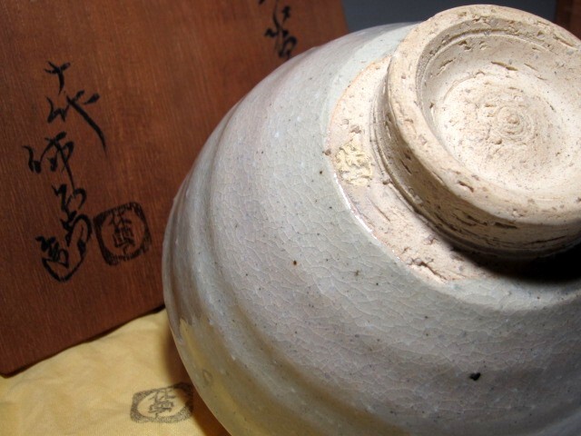 十代三輪休雪作の萩茶碗です。 温かみのある柔らかな肌合いや色調が、とても上品で美しい逸品です。 【十代三輪休雪(みわきゅうせつ)1895-1981】 萩焼三輪窯を継ぎ十代休雪を襲名。 昭和45年重要無形文化財(人間国宝)指定。 サイズ 直径13.5cm/高さ8.5cm(多少の誤差はお許しください) 状態 一見して疵やヒビ・直しは見られません。 骨董品という事をご勘案頂き、時代経過のスレや、小さな傷がある場合があるかもしれませんのでご承知置きください。 | |||