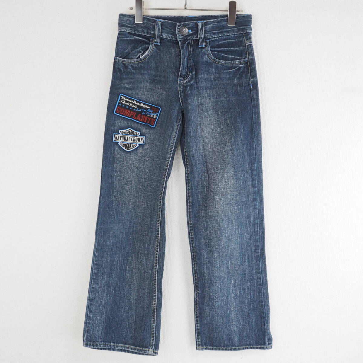 | ページをご覧いただきありがとうございます^^ 衣類、靴を中心に出品しております。 【サイズ】150(身長目安:約145〜155cm) ウエスト:約68cm 総丈:約90cm 股上:約25cm わたり幅:約25cm 裾幅:約21cm 【カラー】インディゴブルー 【コンディション】若干の使用感はございますが、大きなダメージや汚れは見受けられず、全体的に良好な状態です。写真をご確認ください。 【おすすめポイント】 フロントとバックにワッペン風デザインが施された、個性のあるジーンズです。しっかりとした厚手の生地感で、デイリーユースにもぴったり。キッズでもおしゃれに着こなせる一本です。 |