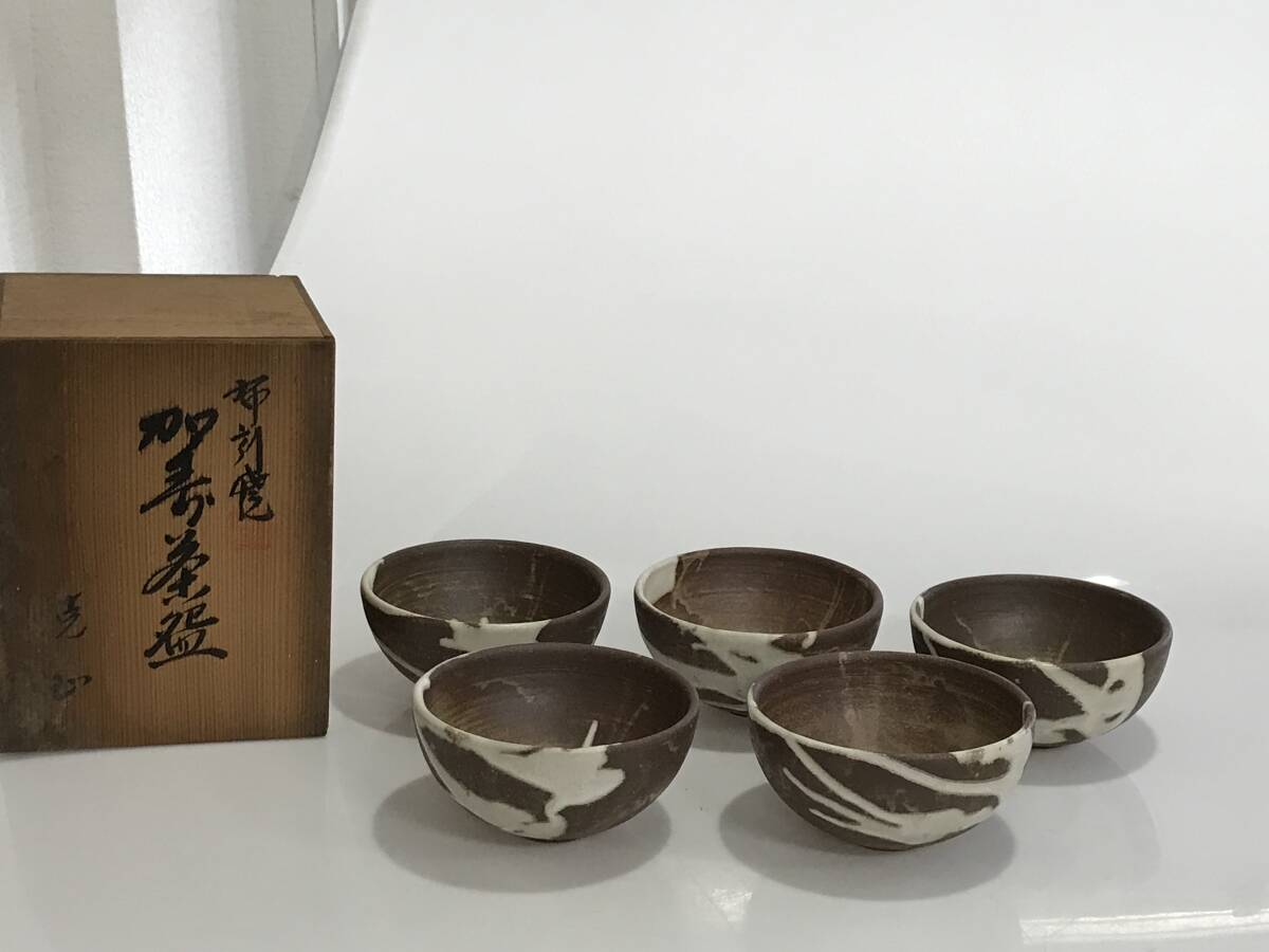 | 商品名 | 加寿茶碗 5客揃 刻印あり サイズ:高さ約7㎝ 口径約12.7cm 陶器 和食器 共箱 |