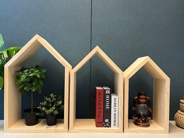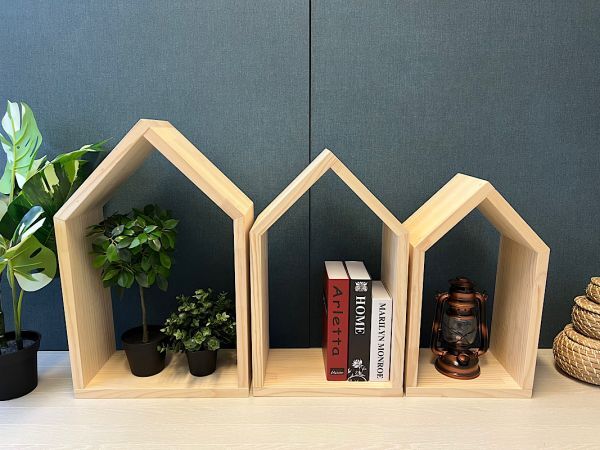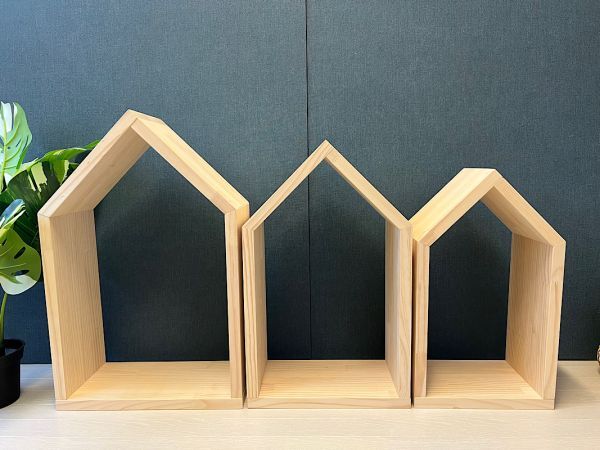 ◎ハウス形の小物置きシェルフです。