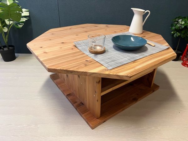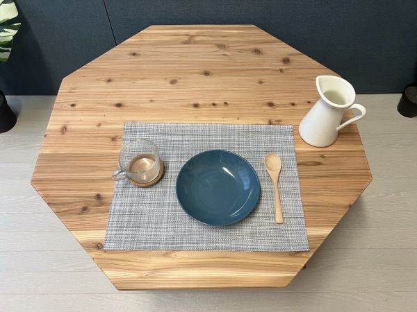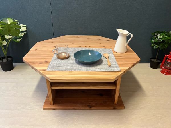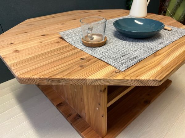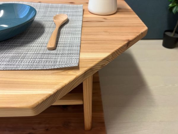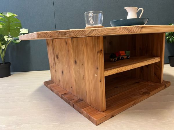 ◎荒々しい木目が美しい、杉材を天板に使用したローテーブルです。