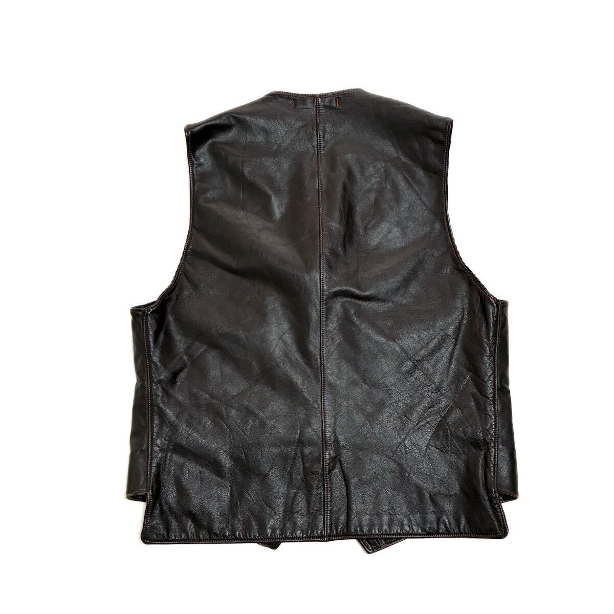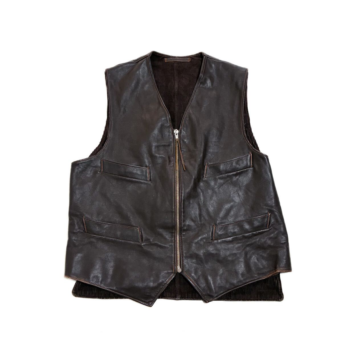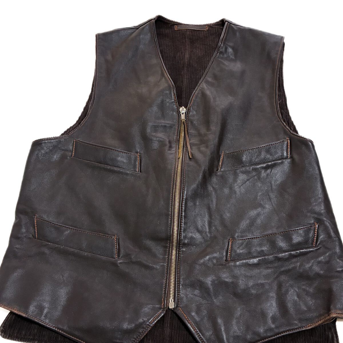 50s ユーロ ヴィンテージ レザーベスト 50 裏地コーデュロイ フランス フレンチ ユーロ 30s 40s